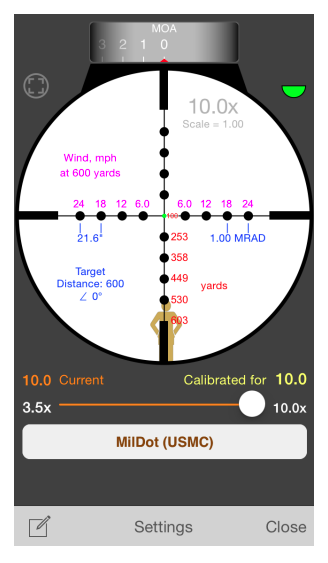 For example, it said at 400 yards, I need to come up 0.98 MRAD. So the first mil Dot below the crosshair should hit at 400. The next dot should be 550 (come up 2.01 mrad).