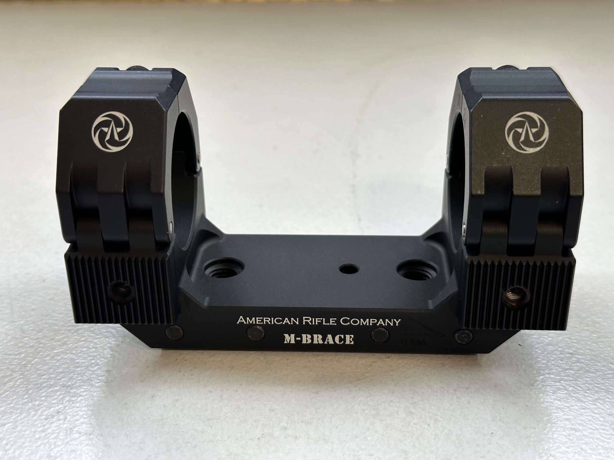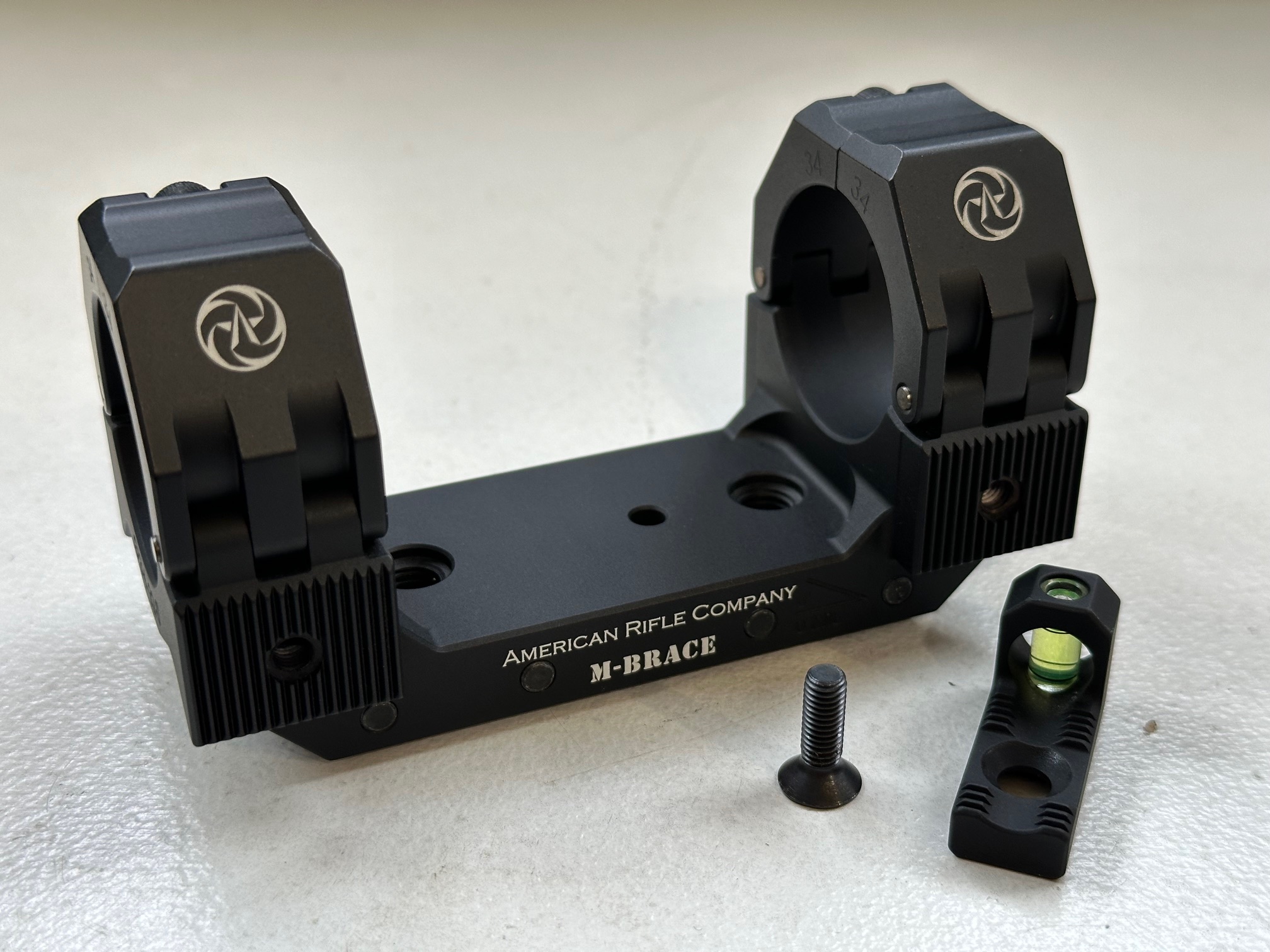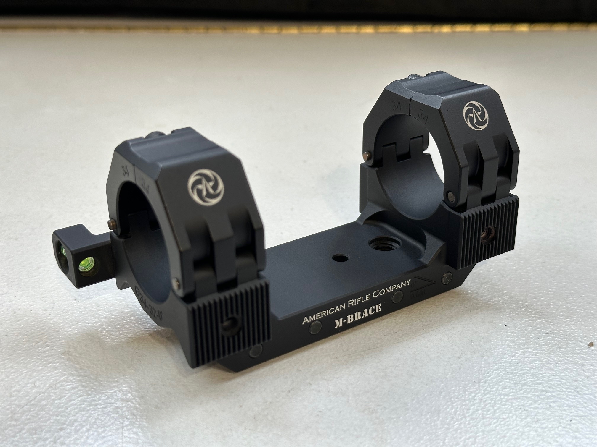 This is an American Rifle Co M-brace one piece scope mount. It has 34mm rings, 1.26" (32mm) height, and 0 degree slope. It comes with the bubble level shown below. Asking $225 shipped and insured on me.