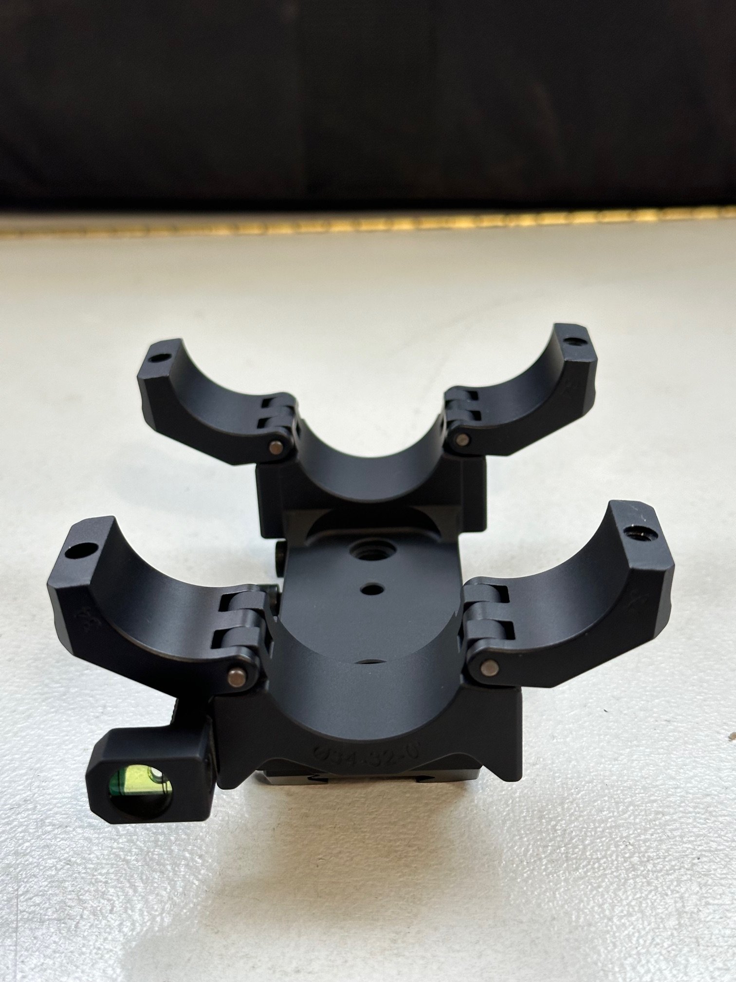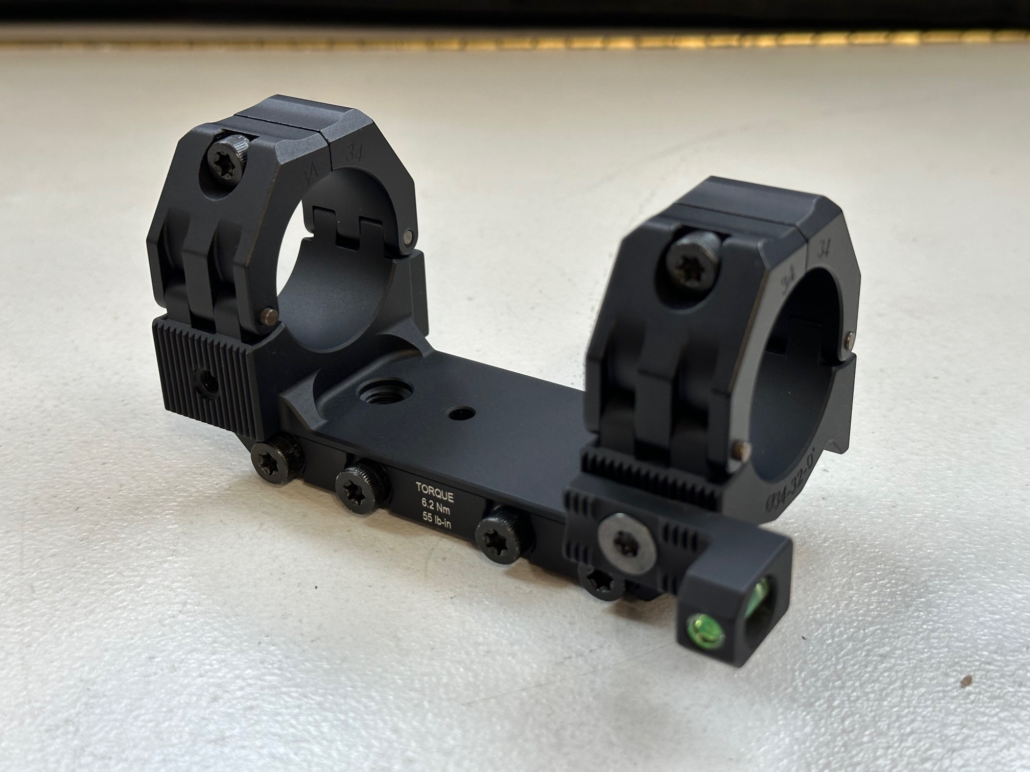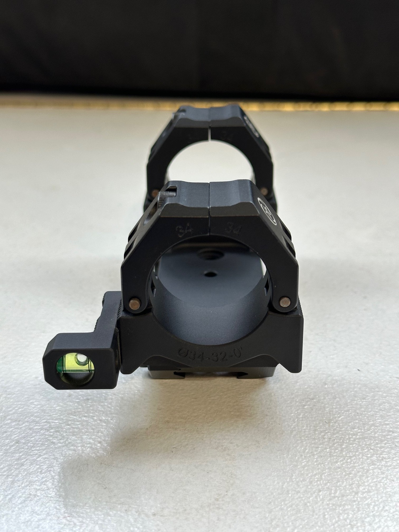 This is an American Rifle Co M-brace one piece scope mount. It has 34mm rings, 1.26" (32mm) height, and 0 degree slope. It comes with the bubble level shown below. Asking $225 shipped and insured on me.
