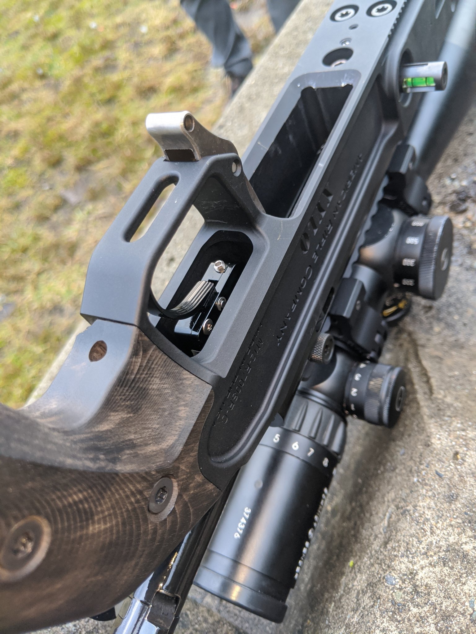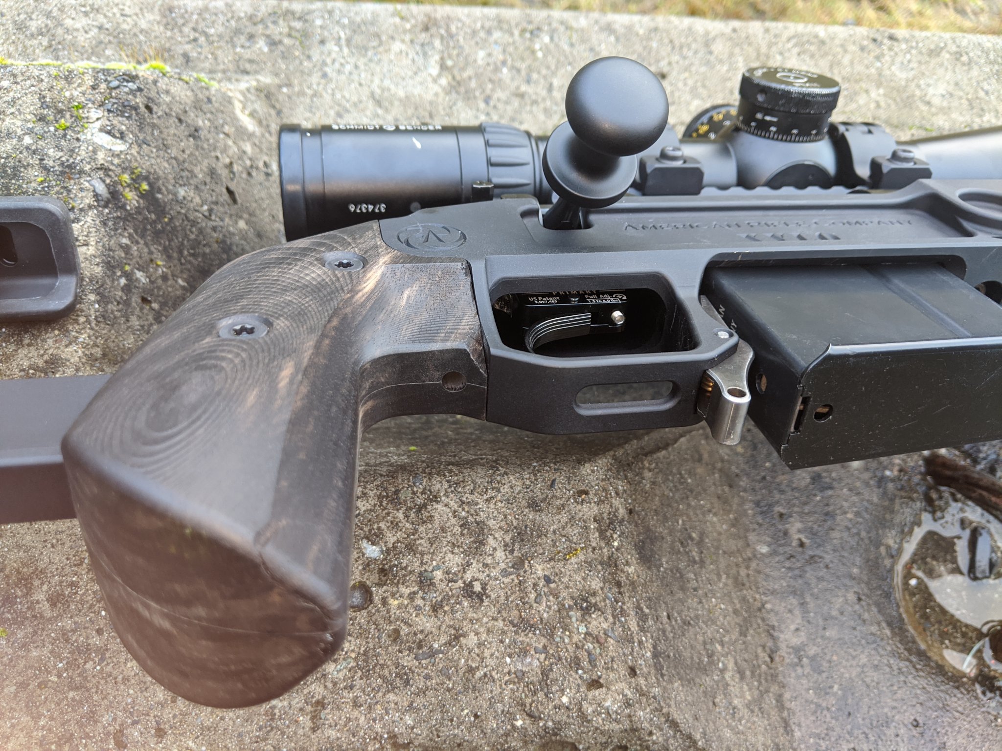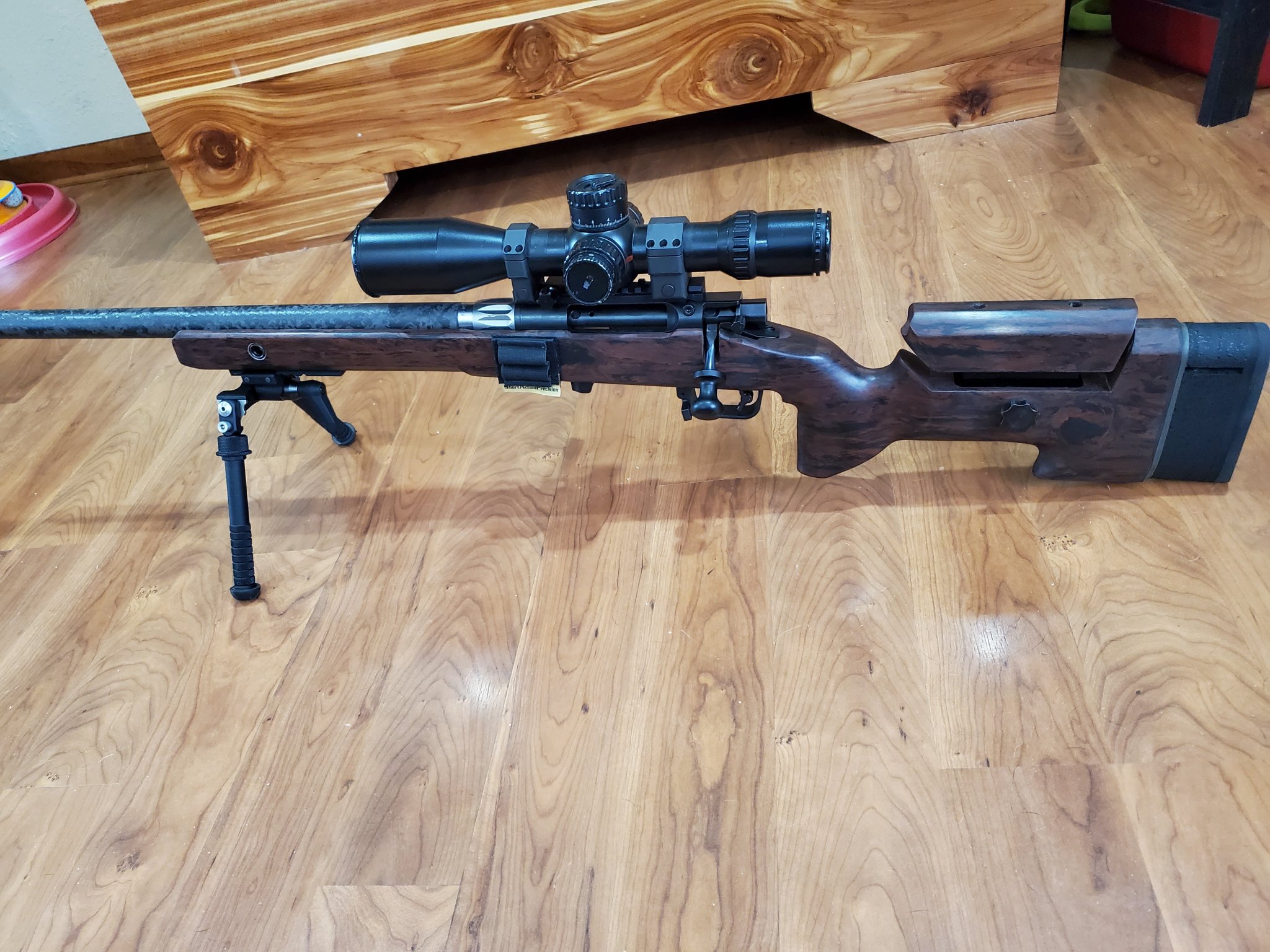 This video helps me "get" the aesthetics. There was something about the pics of the bare chassis that was not doing it for me but seeing it with a barreled action now it all makes sense. Also, seeing how those adjustments are made is awesome. I'm not a fan of the wood grip and I'm sure I'm probably in the minority there. Anyone know what the black grip was?