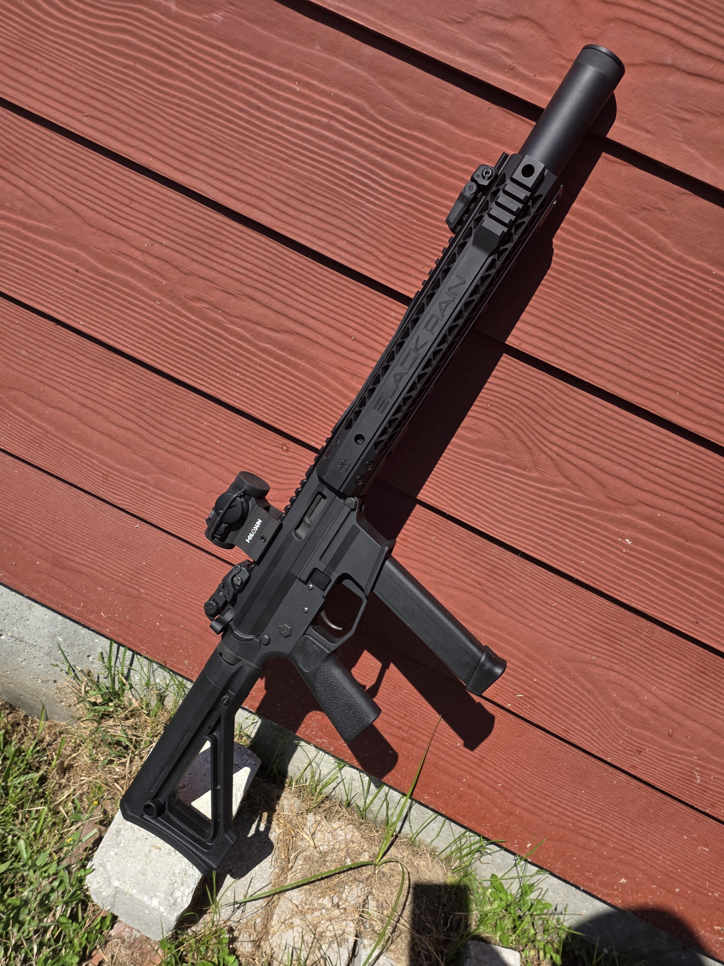 Integrally suppressed AR9 for sale. Cool little project, but I'm working on an MP5-SD so this has to go.