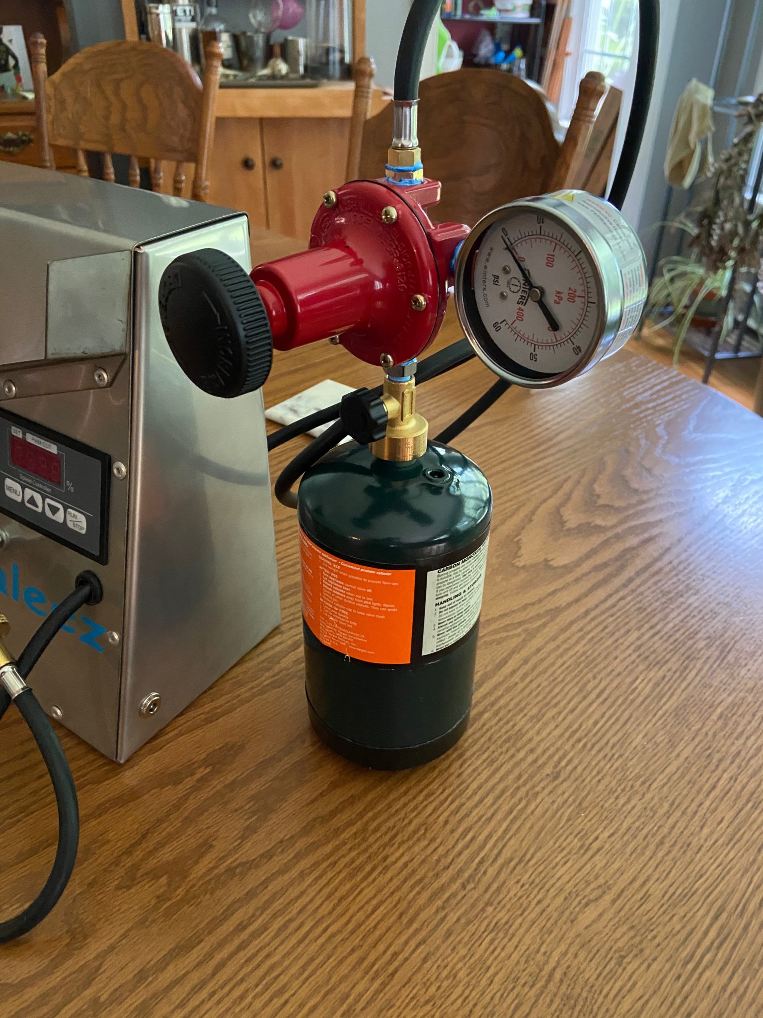 Got a pressure regulator installed for the Anealeez. There's a good write-up on Giraud's, but they use a different torch.