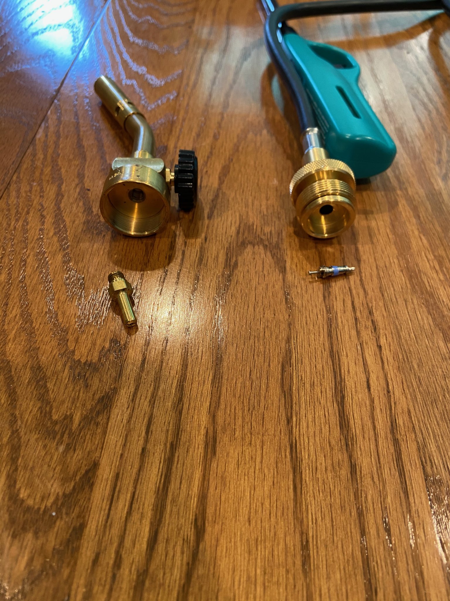 - There's an orifice at the back of the torch that must be removed. This necessitates removing the check valve it depresses.