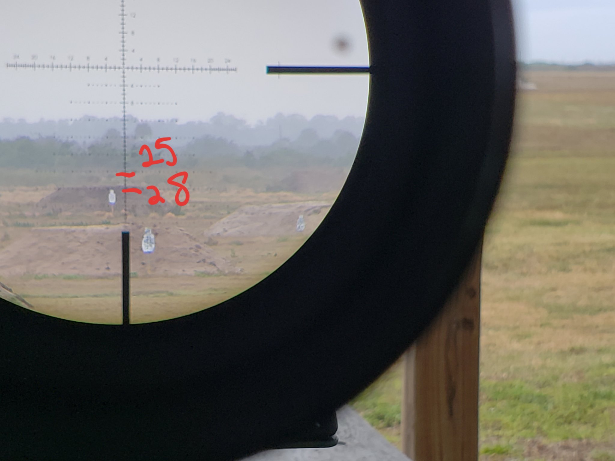 Now the range I go to just partnered with a retired police officer who owns the land (like 3 weeks ago), and long story short, I have a 1,300 yard range 40 miles away!!! For the 1,300 yard range (spoiler, didn't get to 1,000). We both agreed we'd be happy hitting 500 yards on the first day. I bought 200 rounds of Hornady 168gr Match BTHP rounds (MV 2,700 fps) from BulkAmmo dot com fwiw (2 day Fedex shipping and good prices imho). So after the safety chat, it starts raining, then pouring. For all 3 hours of shooting on/off heavy, but the best we got was light rain, so 100% humidity. It was also unusually cold here at a teeth-shattering 54F!