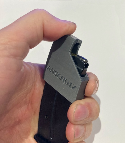 I have 3D-printed magazine accessories available for the curved 10-shot magazines (factory part number 1420-U13) for Anschutz rifles. This includes models 54, 64, 1710, 1712, 1416, 1417. These are things that I made for myself and use them with my Anschutz 1710 competition rifle, but then other Anschutz shooters at local matches wanted some too, and I'm also now making them available here. I already have a listing here of items for the Vudoo V22.