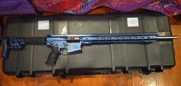 This rifle will be hard cased. Bobro was another one of my choices. I do get a few discounts through a few different sites;) but there are a lot of stuff out of stock or backordered. I know the Scalarworks 34mm probably won't be available until Feb-March from what I was told. Since this is one of my toys, Mega Arms Maten in 6.5 Creedmoor. 24" Criterion barrel, Armalite length gas tube, Odin Works adj gas block, Cryptek gold BCG, silent capture buffer spring, LaRue MBT-2 Flat trigger, 19.5" rail. Fortmeier 12 O'Clock bipod on order. I have so many black guns, a few FDE, OD and a kryptek pattern gun, I just wanted something a little different for this one. I coated this with KG Industries custom titanium blue that I mixed up from some stuff I had left over from the shop. Gives it a little character, the light makes it look really blue here, but it is more gray in the daylight. I am in no real hurry right now so I may wait for the Scalarworks, this rifle took a year to build with the K-Roni closing half the country down. Thanks for your input ACard.