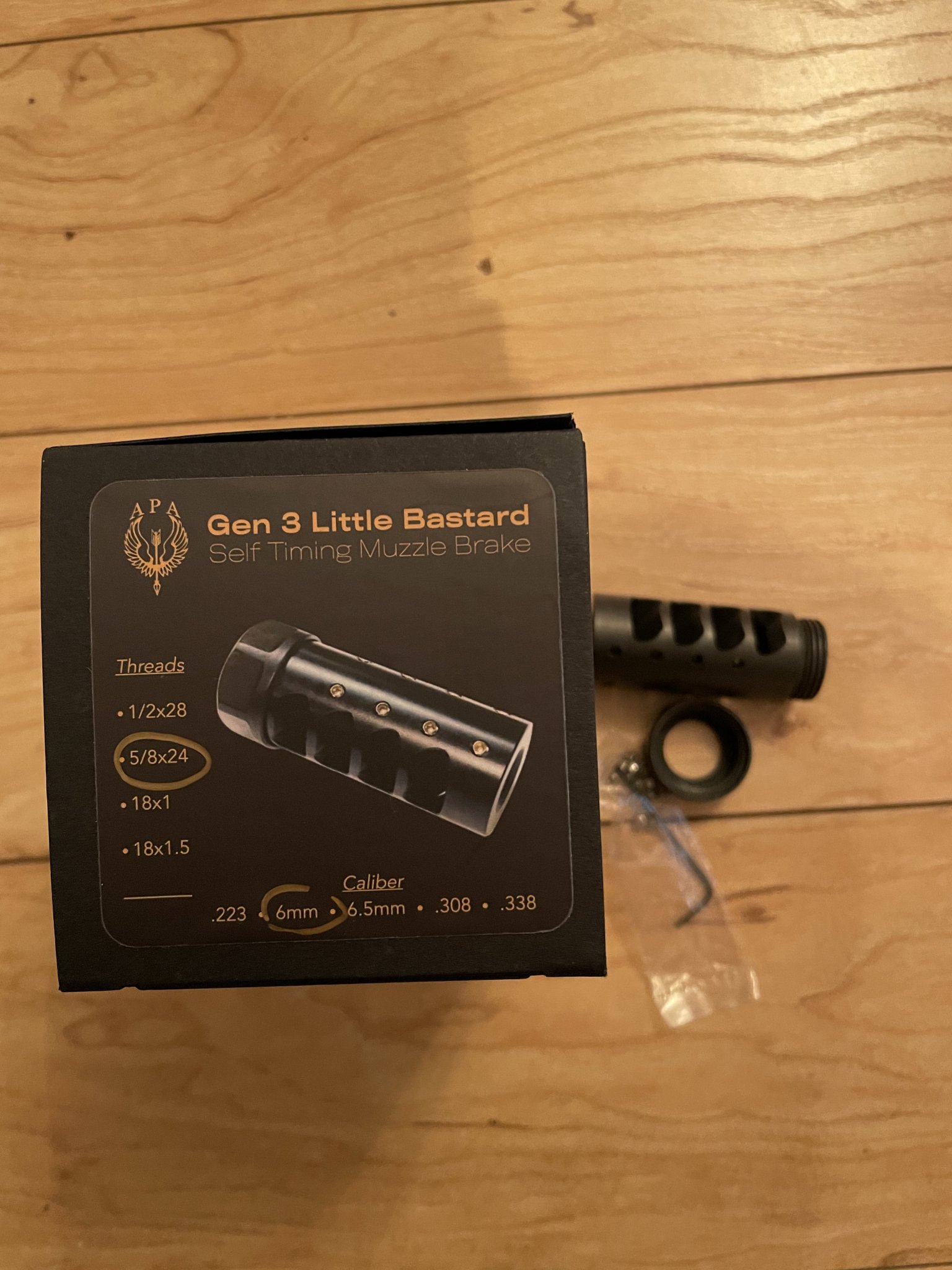 APA GEN 3 LITTLE BASTARD SELF TIMING MUZZLE BRAKE, 6mm, 5/8x24