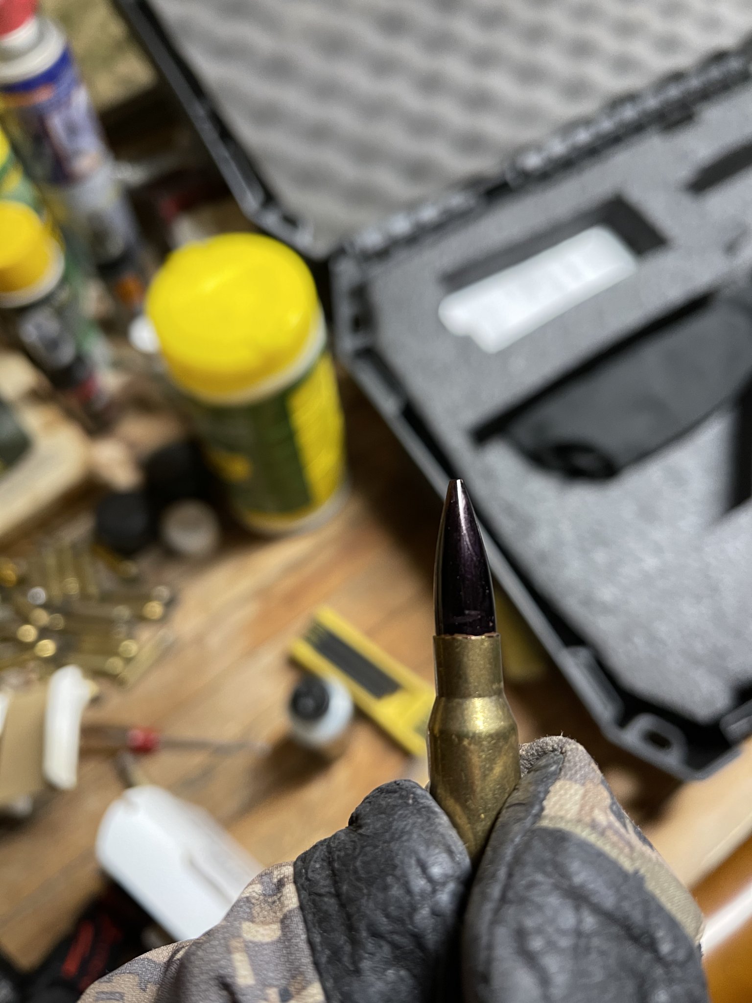 it wasn’t until I bought that box of Gold Medal 168 when I found out the bullet was getting stuck and unseated in the chamber. So then we made some hand loads and those got stuck in the chamber.