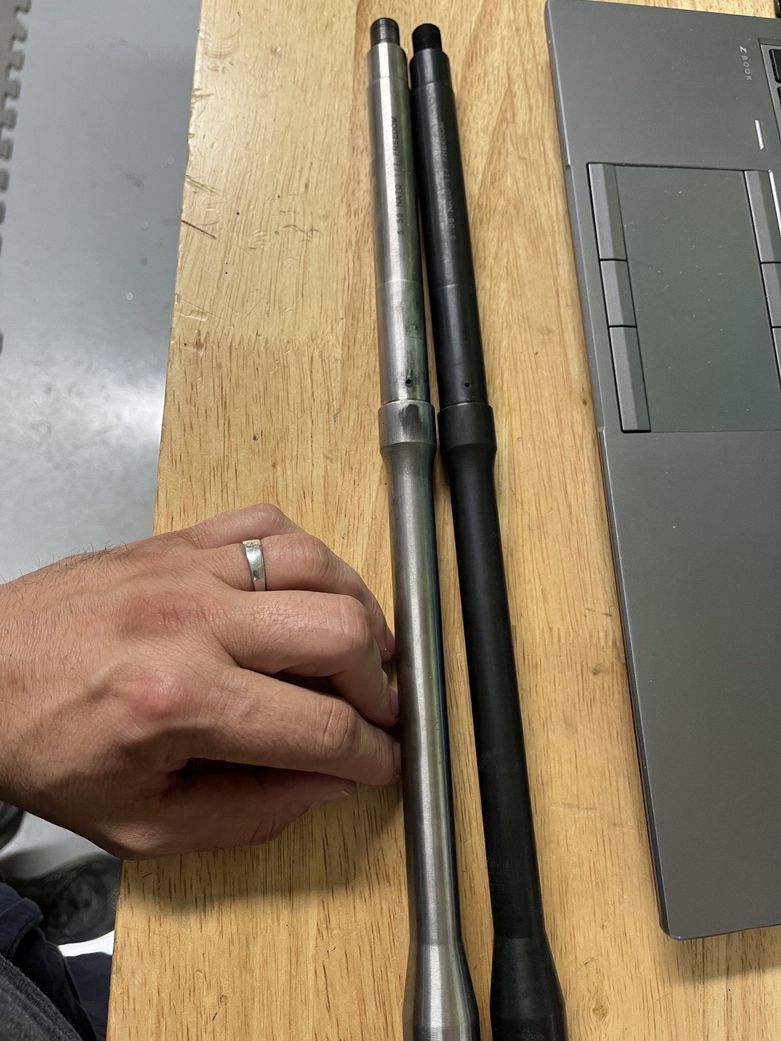 5.56x45 chambers, Slightly used both are 16”, .750” gas block, 1/2-28th treaded muzzle, .080” gas port, 1:7 twist, mid-length gas system - 1( black) nitride coated and 1 nickel boron (shinny) both have less than 500 rounds on them and show good sharp rifling. $55.00 per shipped or $110.00 for both