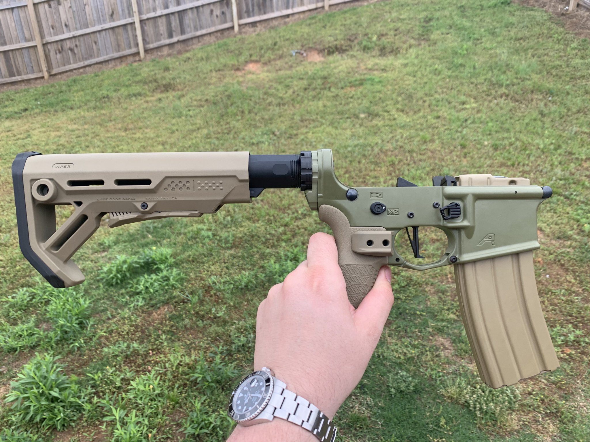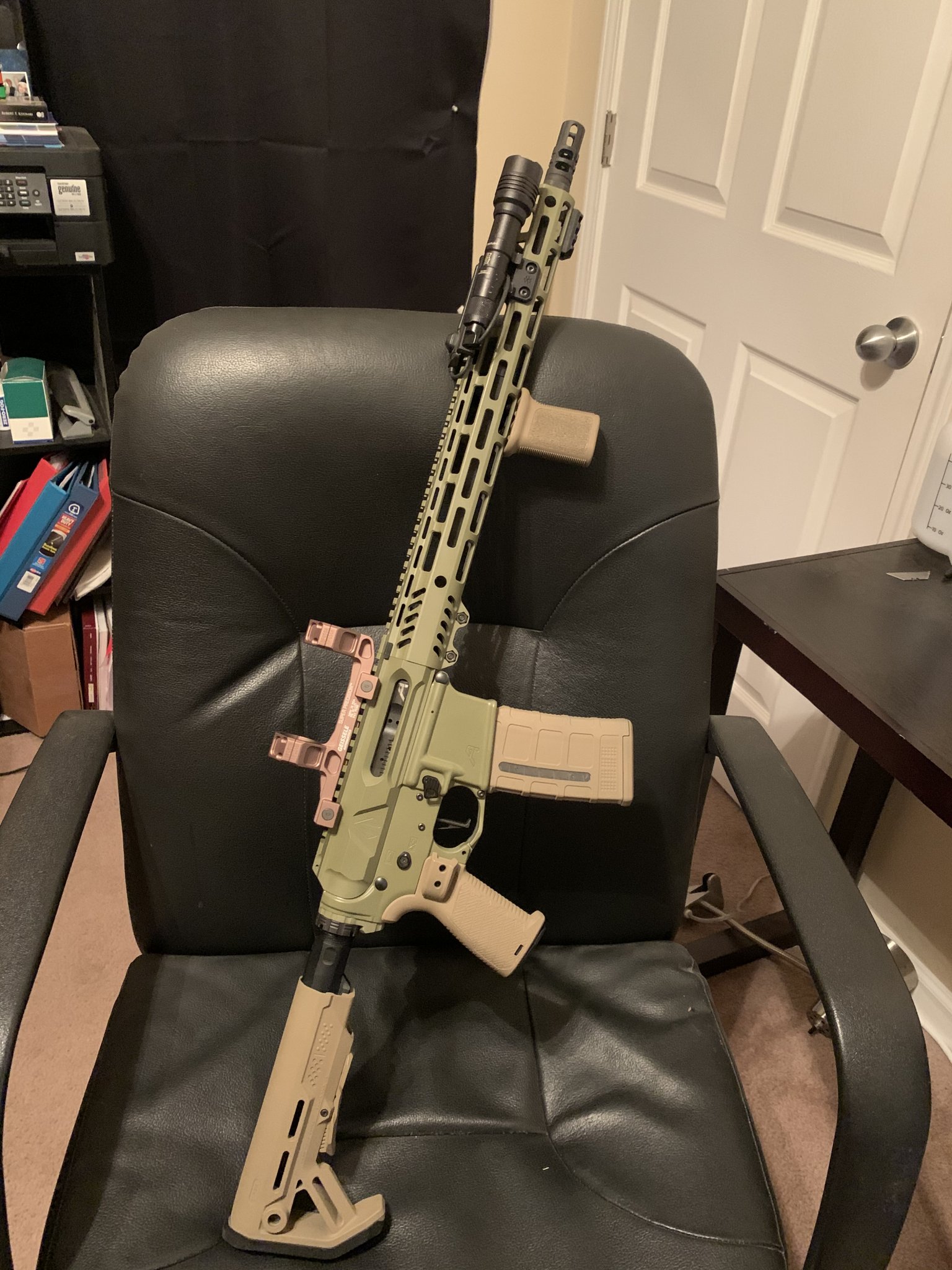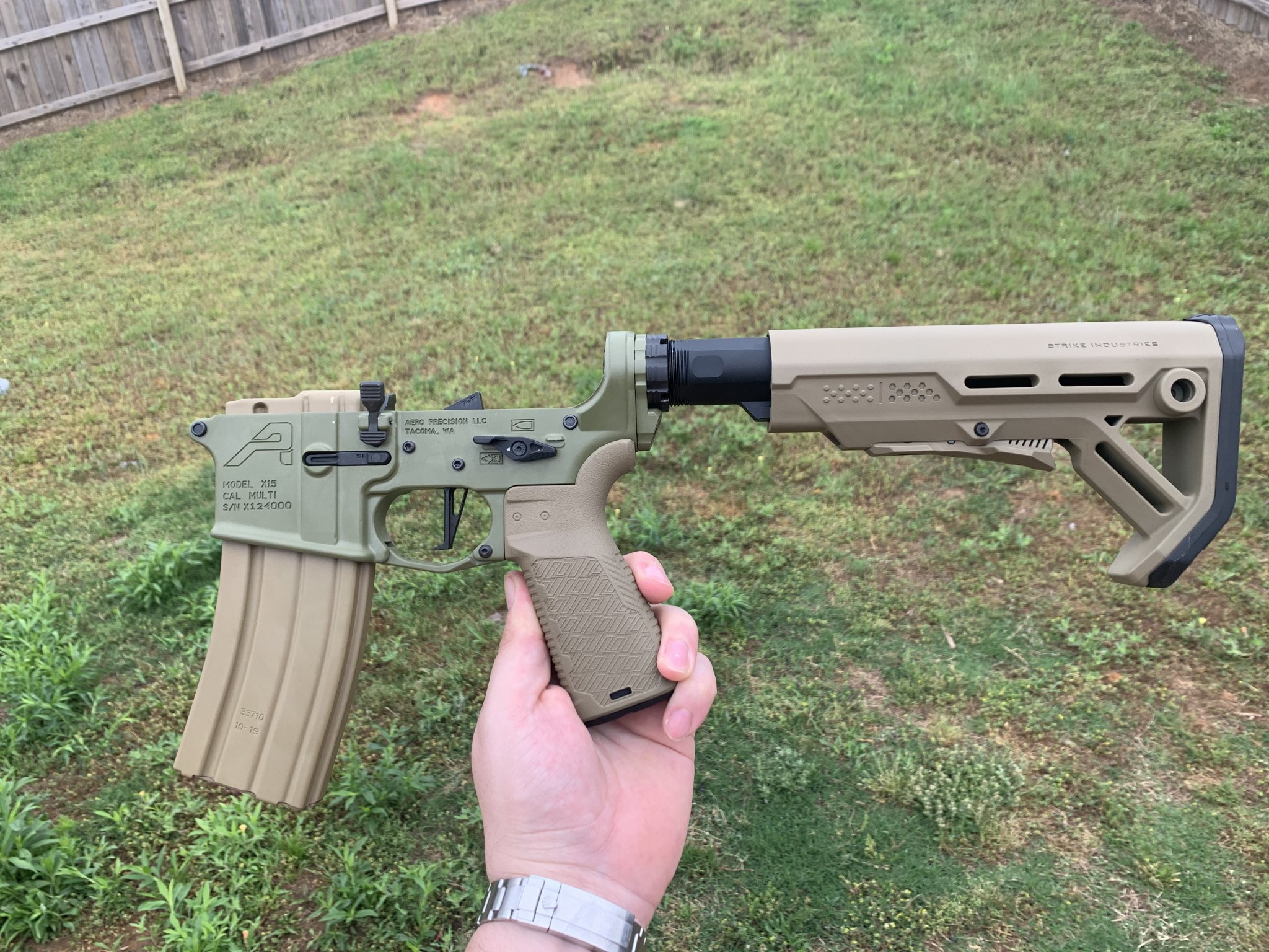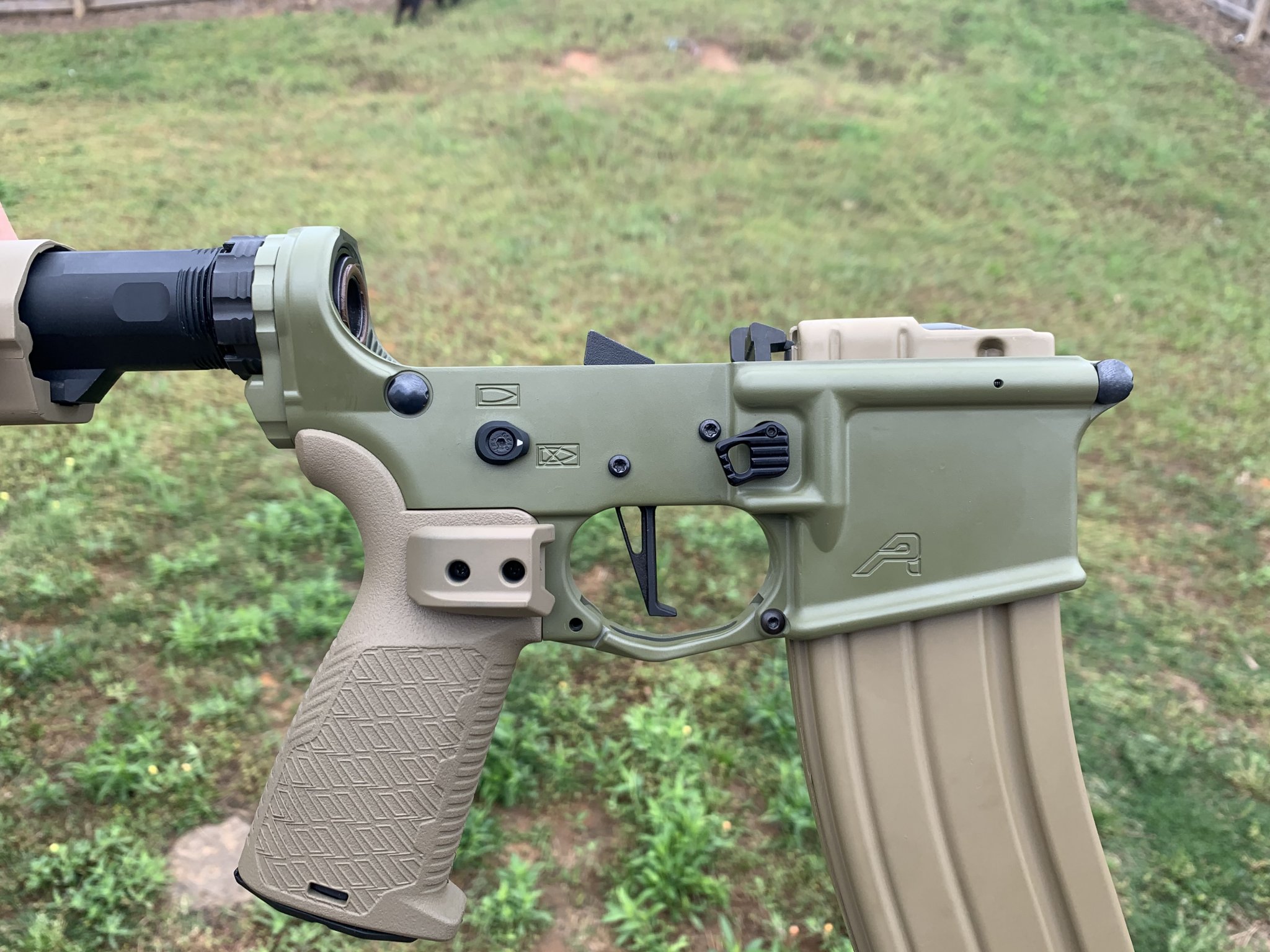 Selling my Aero precision gen 2 lower that has been painted Noveske green with strike parts. The CMC 3.5 lbs trigger can be purchased separately but is not included in the price below. **the magazine also not included and there is no buffer spring/ buffer. There is a small mark on the lower from installing the bot catch and I made sure to take pics to see that. The stock and grip were Cerakoted coyote tan. All Cerakote work done by Primal Finish.