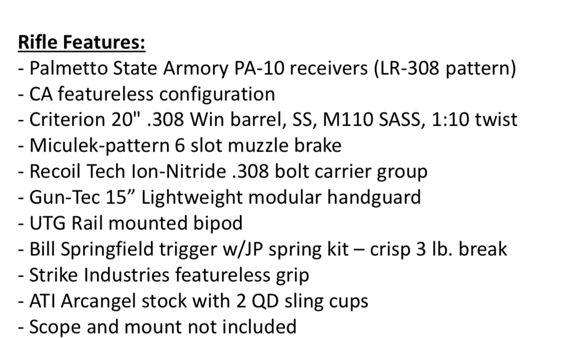 *SOLD Cal compliant AR10. Good shooter. Eats 175’s and 168’s great. $900 $800 shipped to your ffl