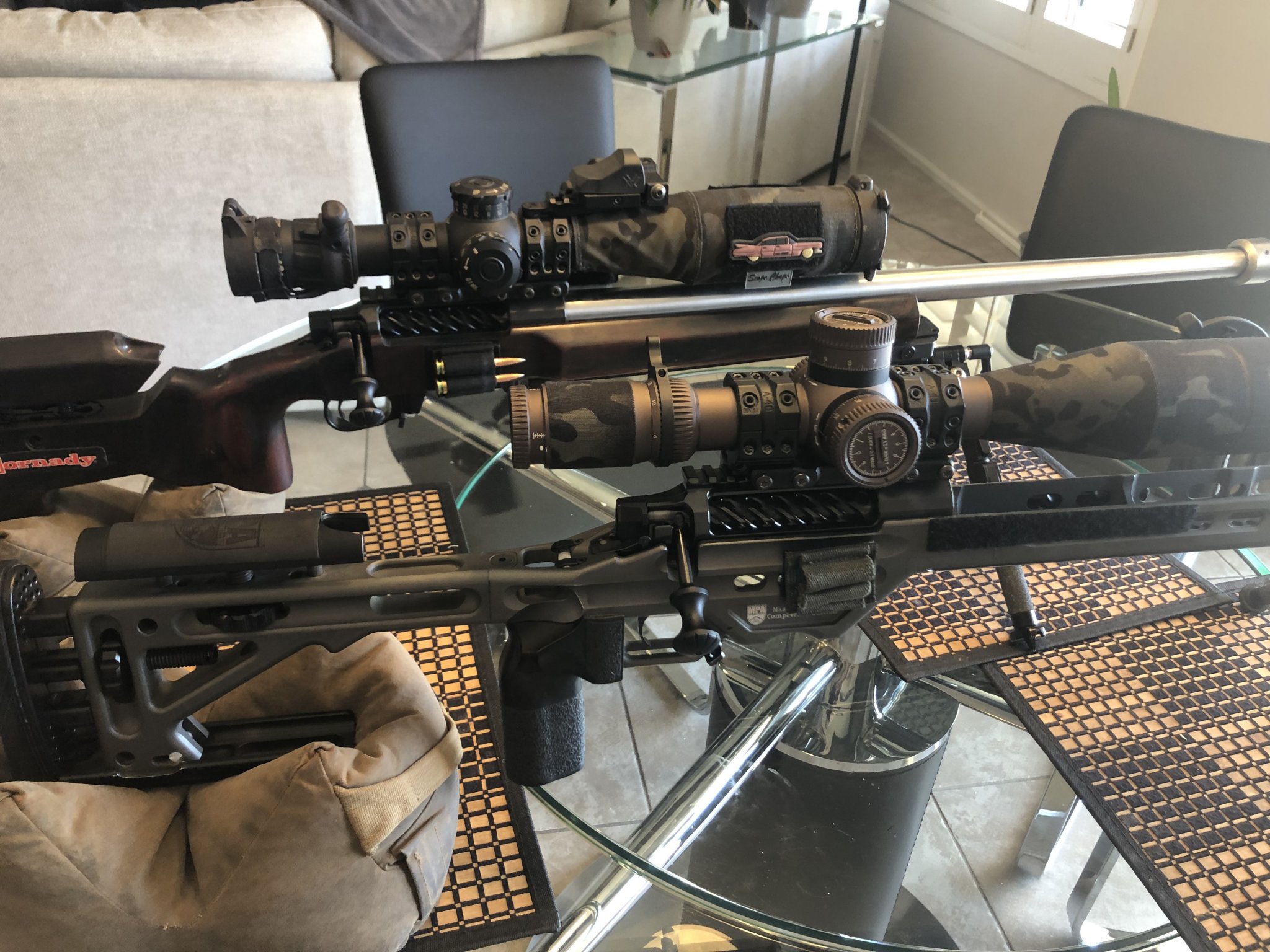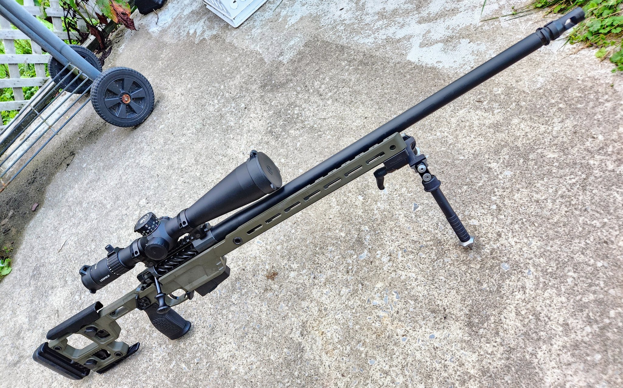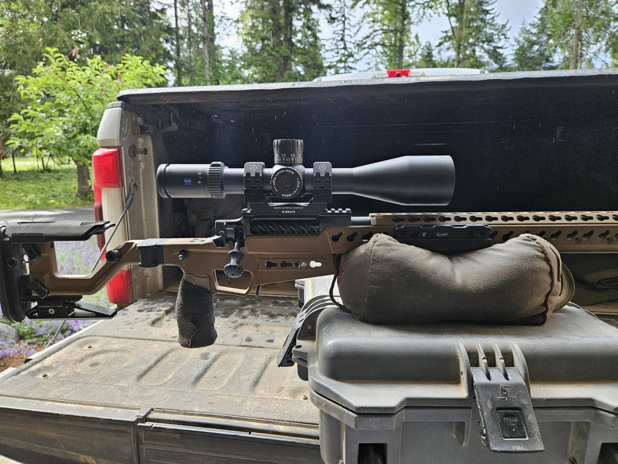 Rifle #2, CDG 30 MOA rail, 27" 7.5tw hawkhill hvy comp cut with saami 65creed, hypertap brake, AI atx FDE chassis, zeiss LRP S3 6-36, mbrace mount. AI AX mags work well in the atx chassis. TT Special.