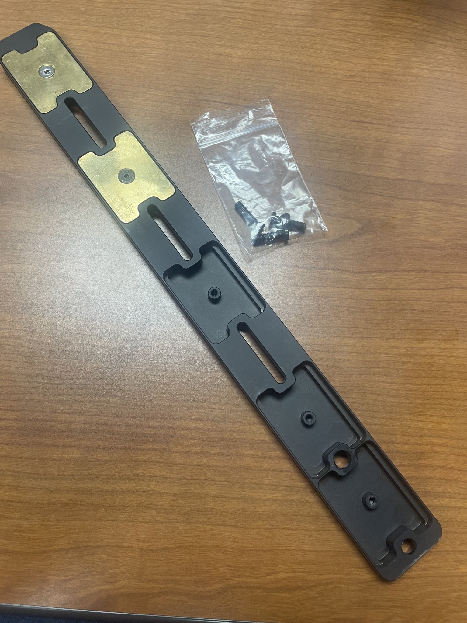 For Sale: 14.25” Area 419 Universal Weight-Tuneable Arcalock Rail. This rail comes with two brass weights mounted and has 3, 10-32x3/4” attachment screws. In very good used condition. $SOLD