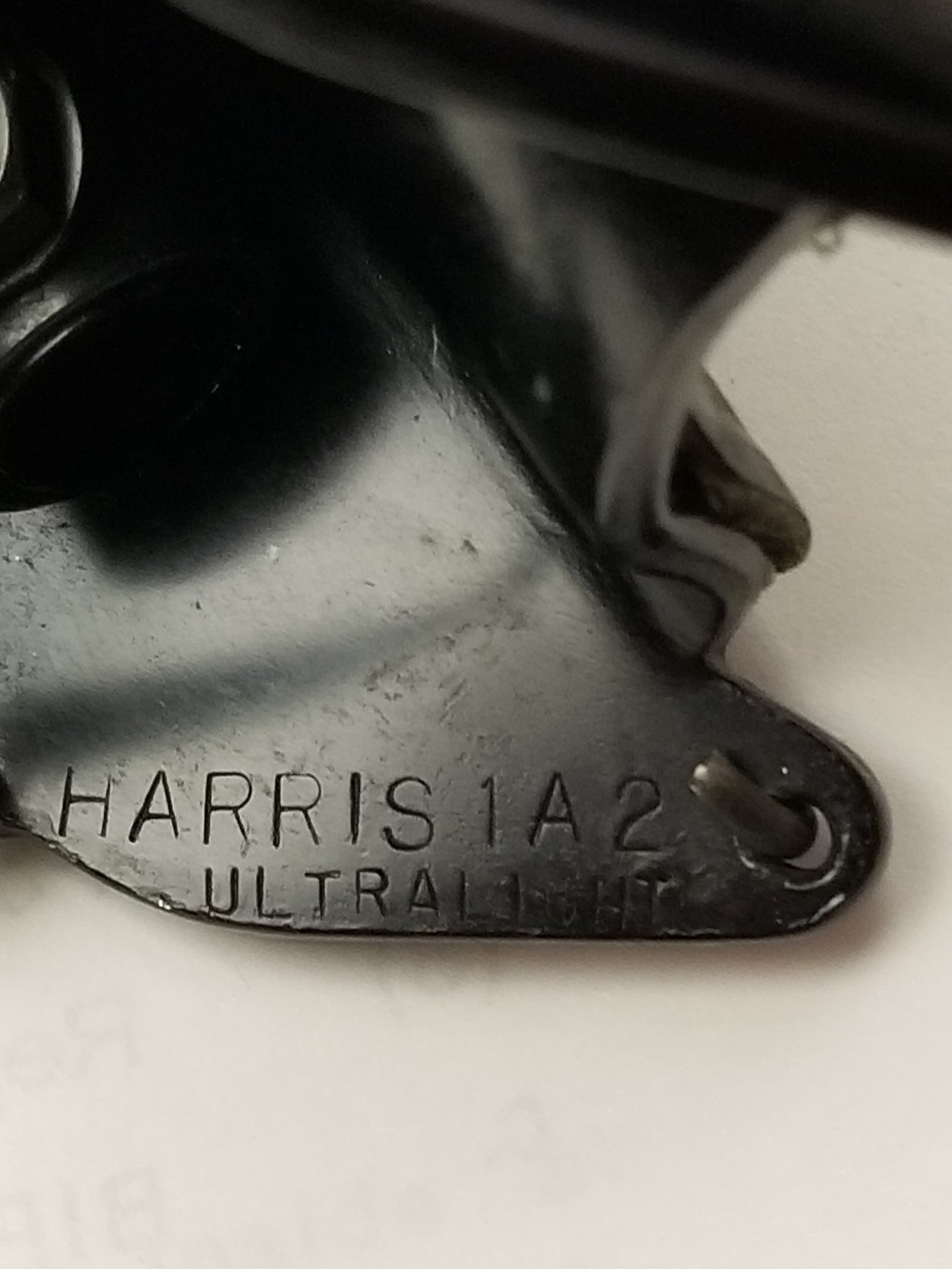 Bipod illustrated in the Army Operator's Manual is an early version of the Harris 1A2 Ultralight with hard plastic foot pads. Legs were smooth without notches, and are spring assisted retraction. Non-swiveling, but has an adjustable brass insert plate to compensate for off-center stud location. The mounting claws (side plates) have holes that would allow a QD sling swivel to be attached, but the Harris instruction sheet specifies not to connect a carrying sling to this point on Series 1A2 bipods. This is the reason why 2 swivel studs are mounted on the stock forend. One is for the bipod, the other for a sling. Tightening the bipod setscrew puts tension on the swivel stud, and the additional load of a sling could cause the stud to strip out of the stock.