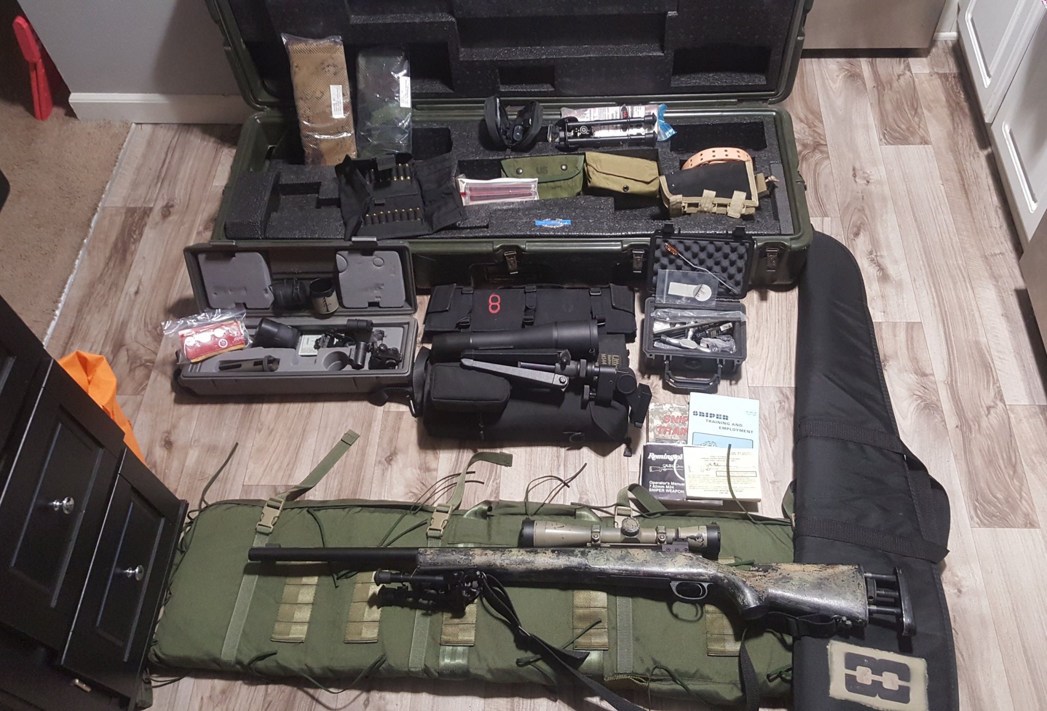 Regarding my tool kit, its a Pelican 1120 and I'm pretty certain its 100% correct for a late M24. Why? Well, a buddy of mine went thru US Army sniper school in 2009 and was issued an M24. He spent time in Afghanistan with it, and retired a few years later. When he turned in his M24, he was told it was to be converted to new XM2010 variant.