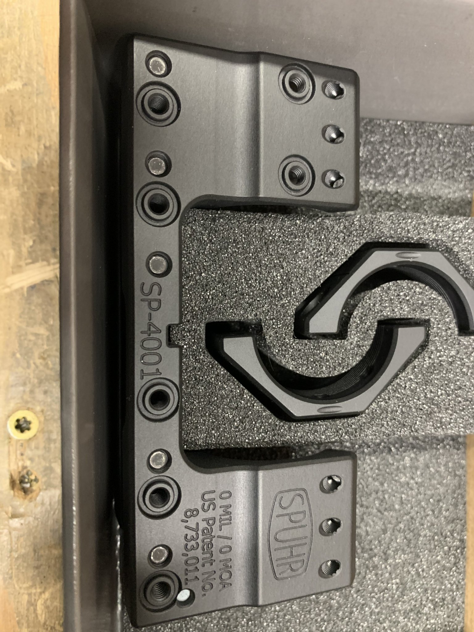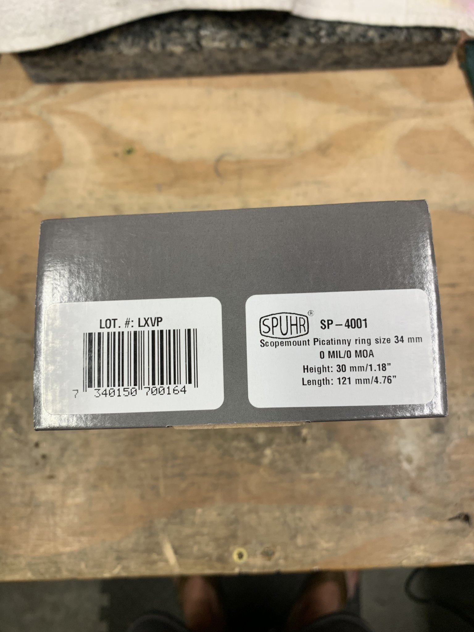 Fits 34 mm rings. Mounted but not torqued. Just decided to go a different direction. Comes with everything in the box as seen. Asking $385 shipped/insured. PayPal FF.