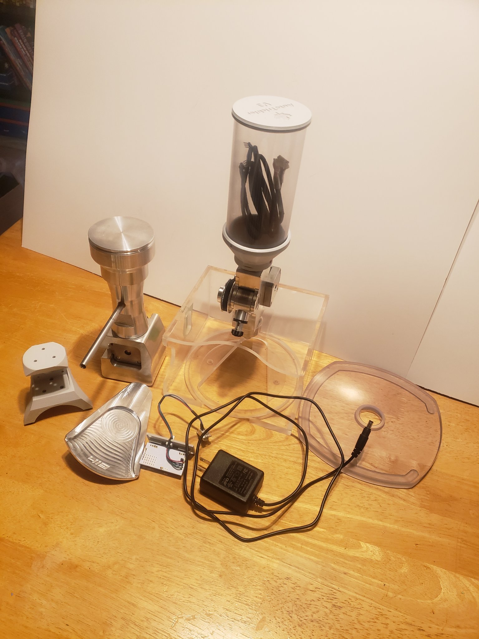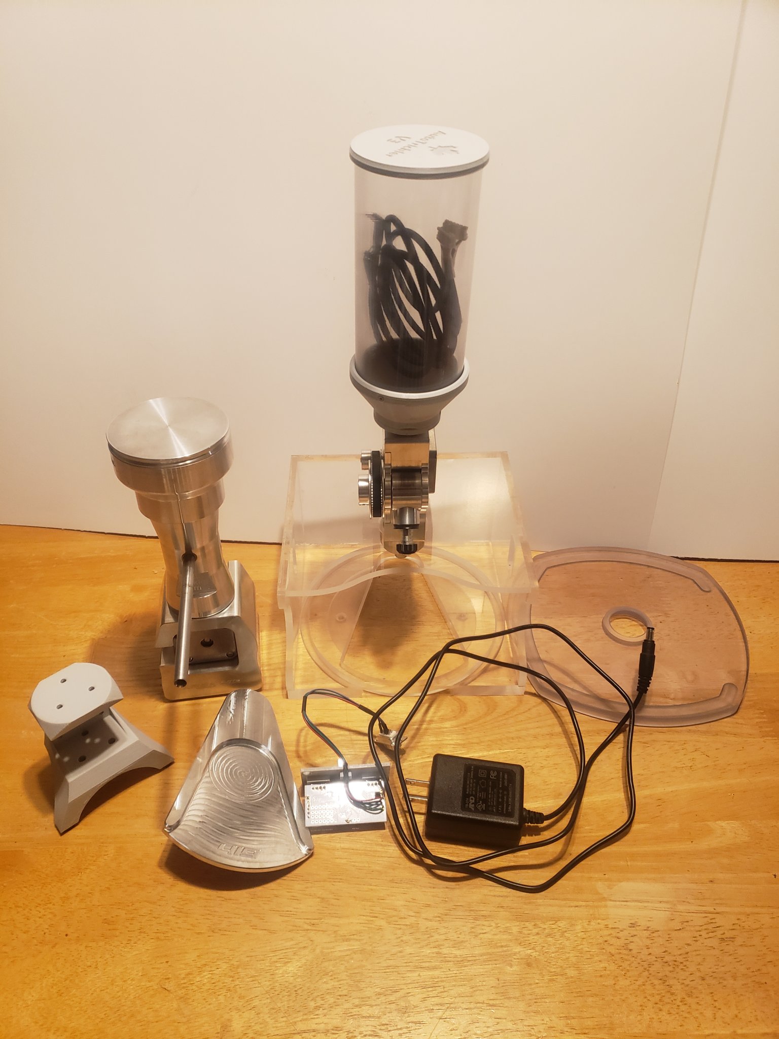 Listing my AT V3 with a bunch of upgrades. Got my V4 in and going to send this down the road. works great. comes with custom cut stand from a member here (I believe). 419 tray, throw funnel, trickler stand, trickler hopper, and 419 lid for the standard FX housing.