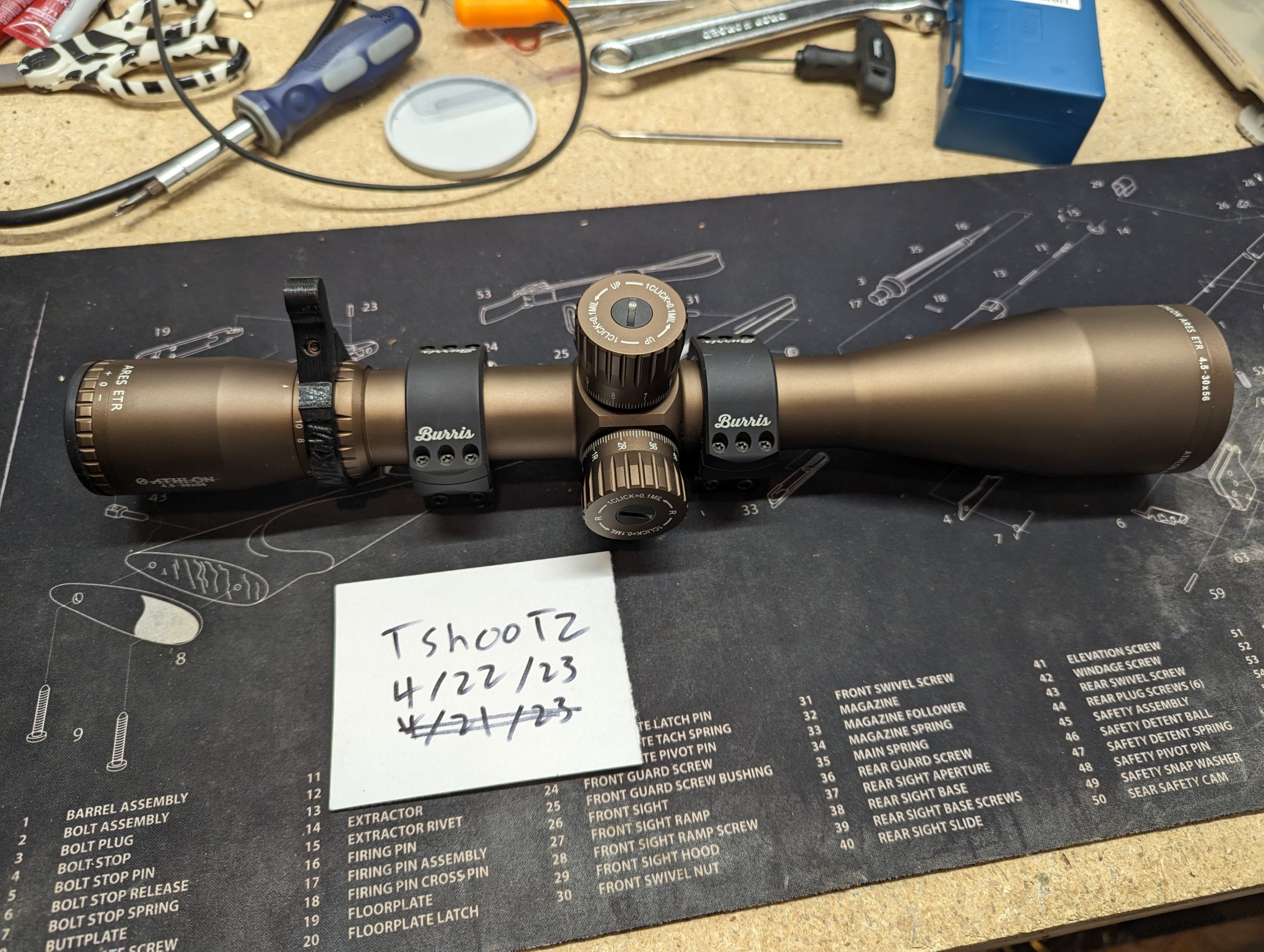 I have a Athlon Ares ETR 4.5-30x56 I no longer need. It has the APRS 1 reticle which is MIL, sits in Burris XTR Signature rings and has a MK Machine throw lever. Asking for $825 plus shipping.