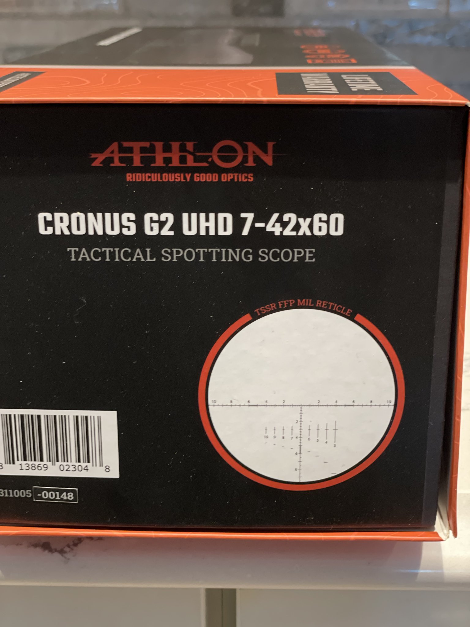 Athlon Cronus Gen 2 - 7-42 Tactical Spotter with mil reticle. Brand new and honesty great little spotter, just decided spotting scopes aren’t for me.