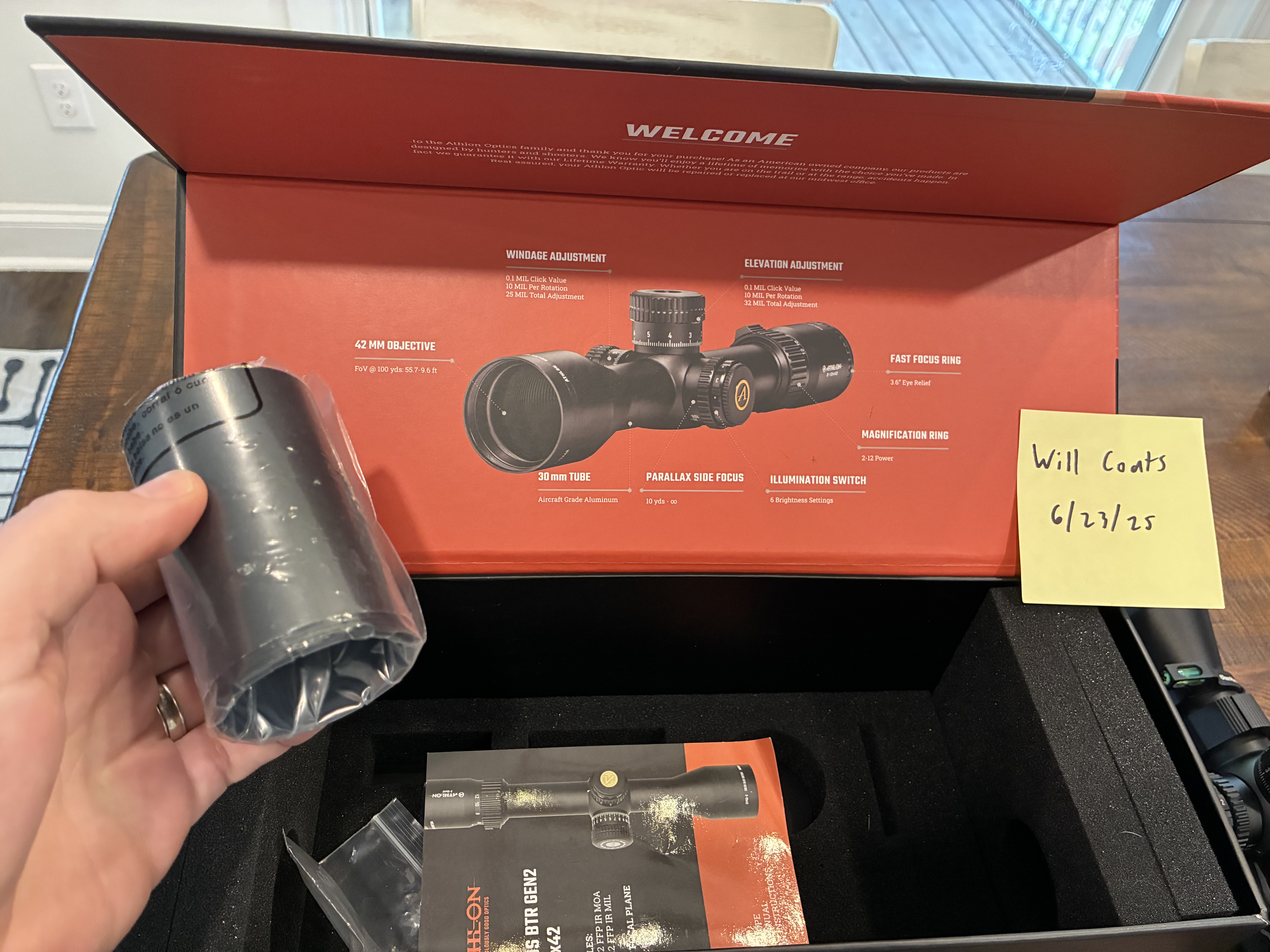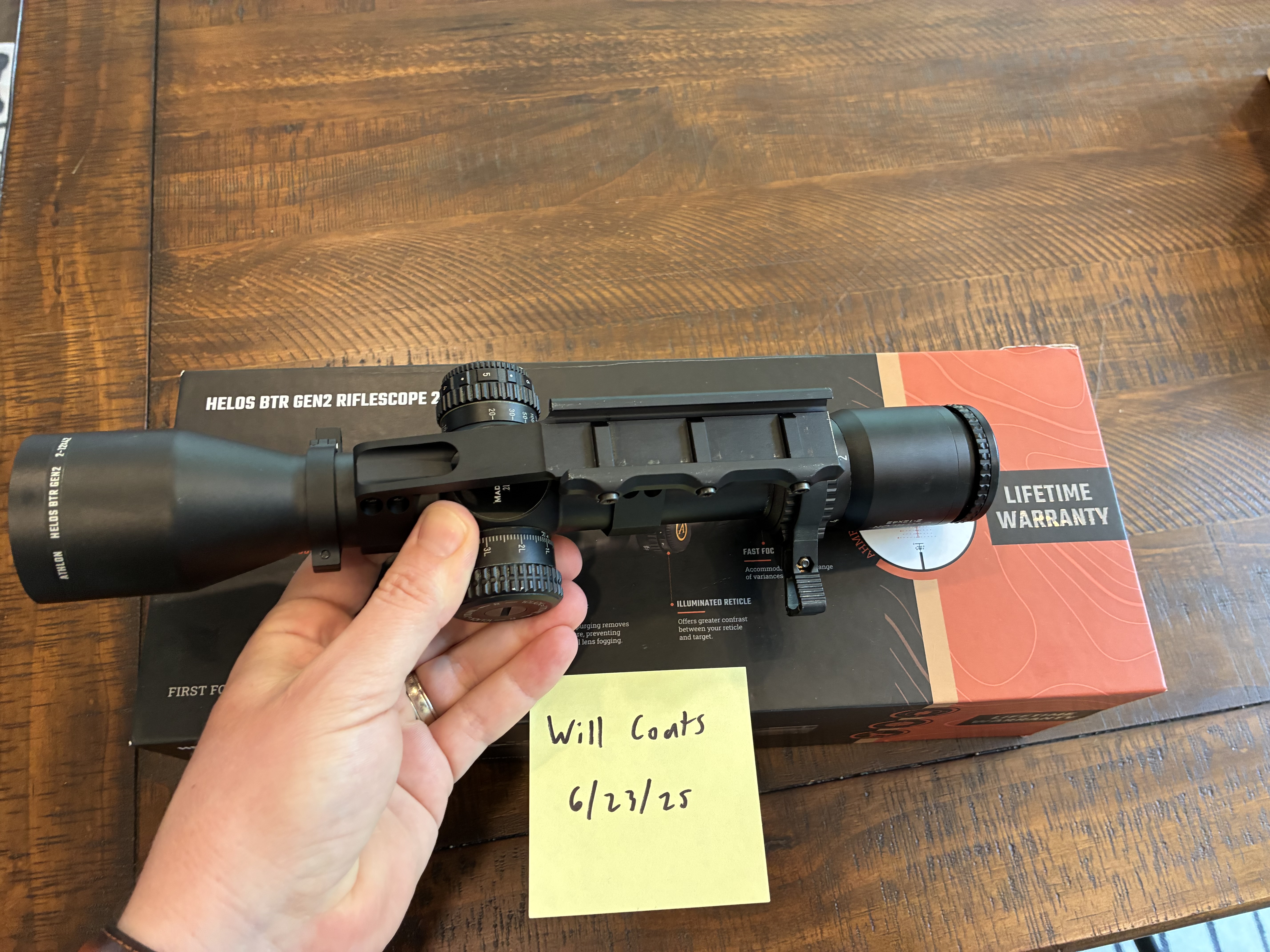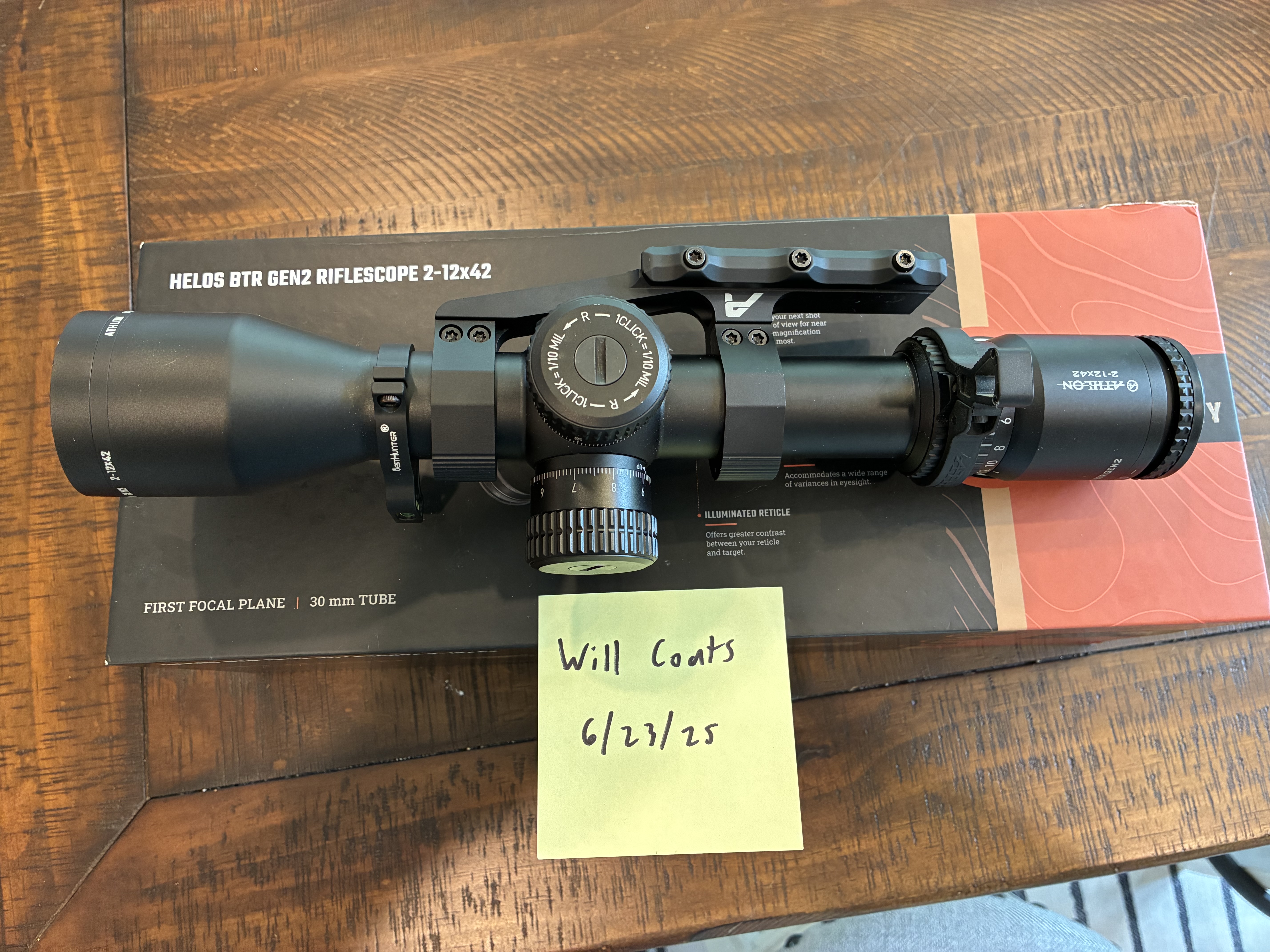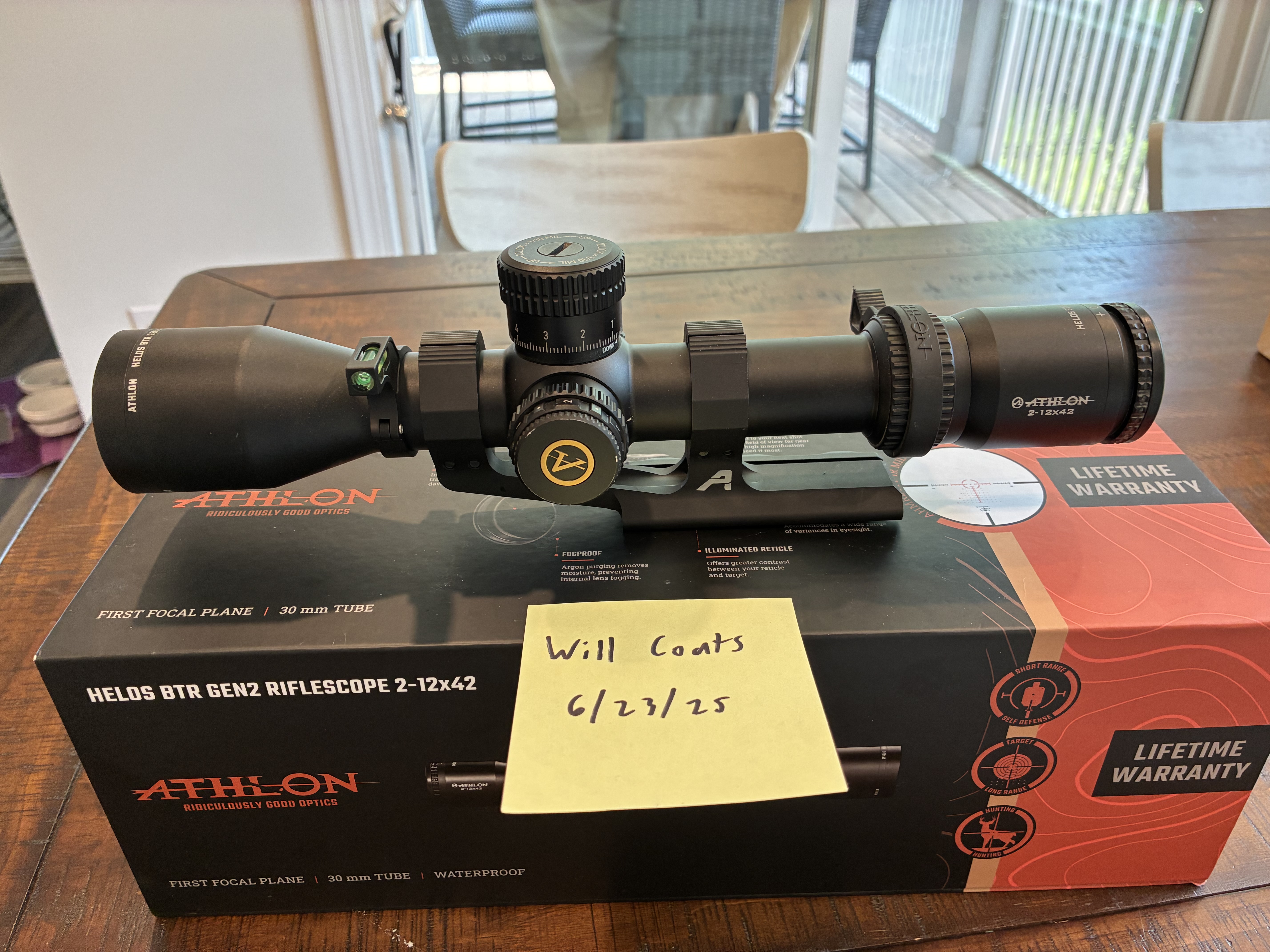 In a Aero Precision ultralight SPR mount with throw lever and bubble level. Includes original box with sunshade and all documents that came with it. Great scope for an SPR style AR. Glass is surprisingly good for the price point.