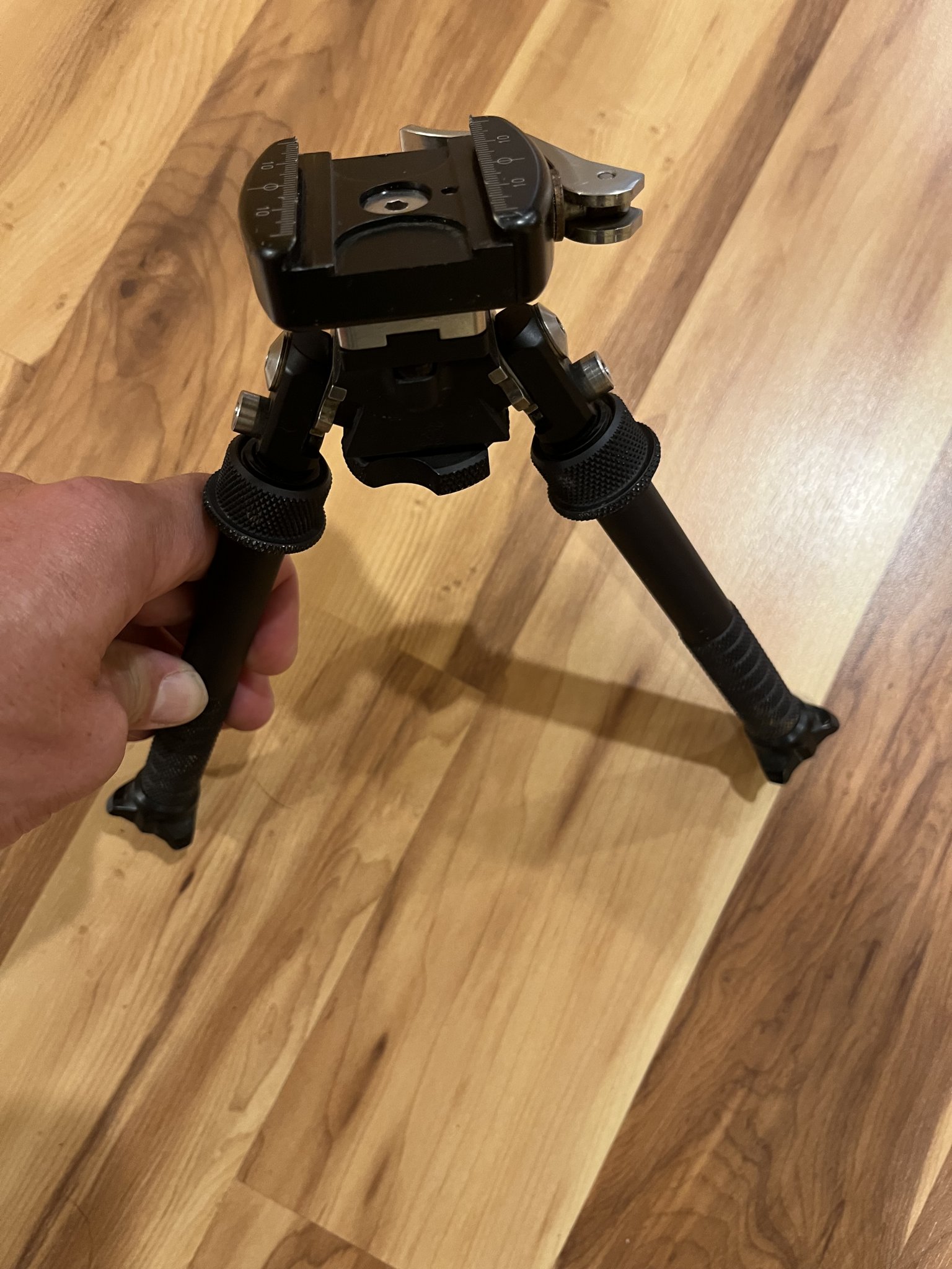 Atlas bipod. 5” to 9” legs with spike feet. RRS QD arca mount. $250 shipped.