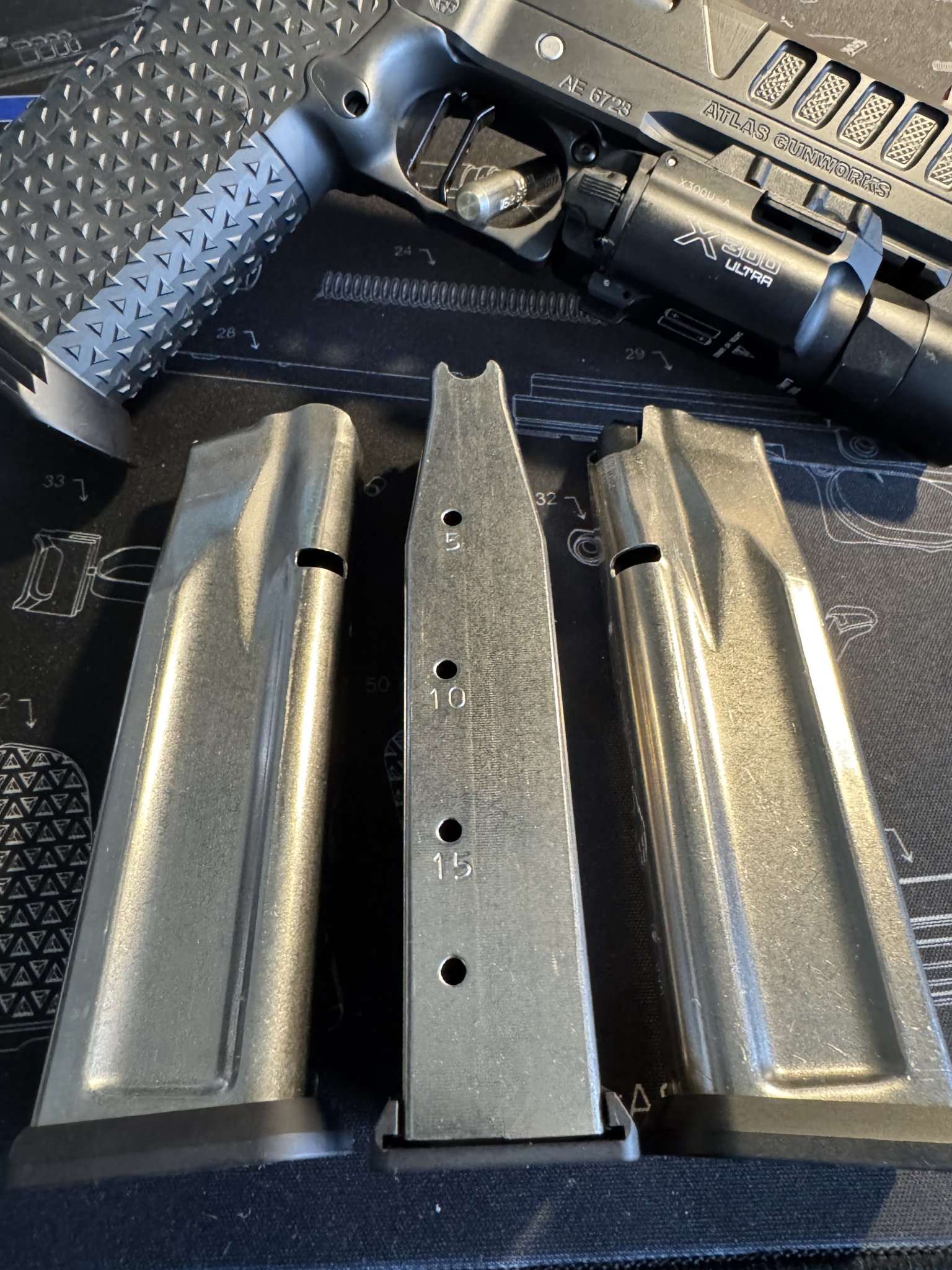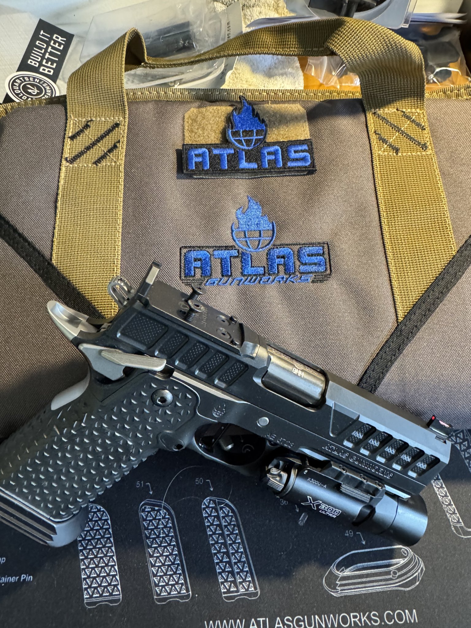 Atlas Nyx for sale. Purchased in fall of 2024. Less than 500 rounds. 4.25” barrel. Sub 2lb trigger. Surefire light included. Three Atlas magazines (17 rounds) with Atlas range bag. Very clean.