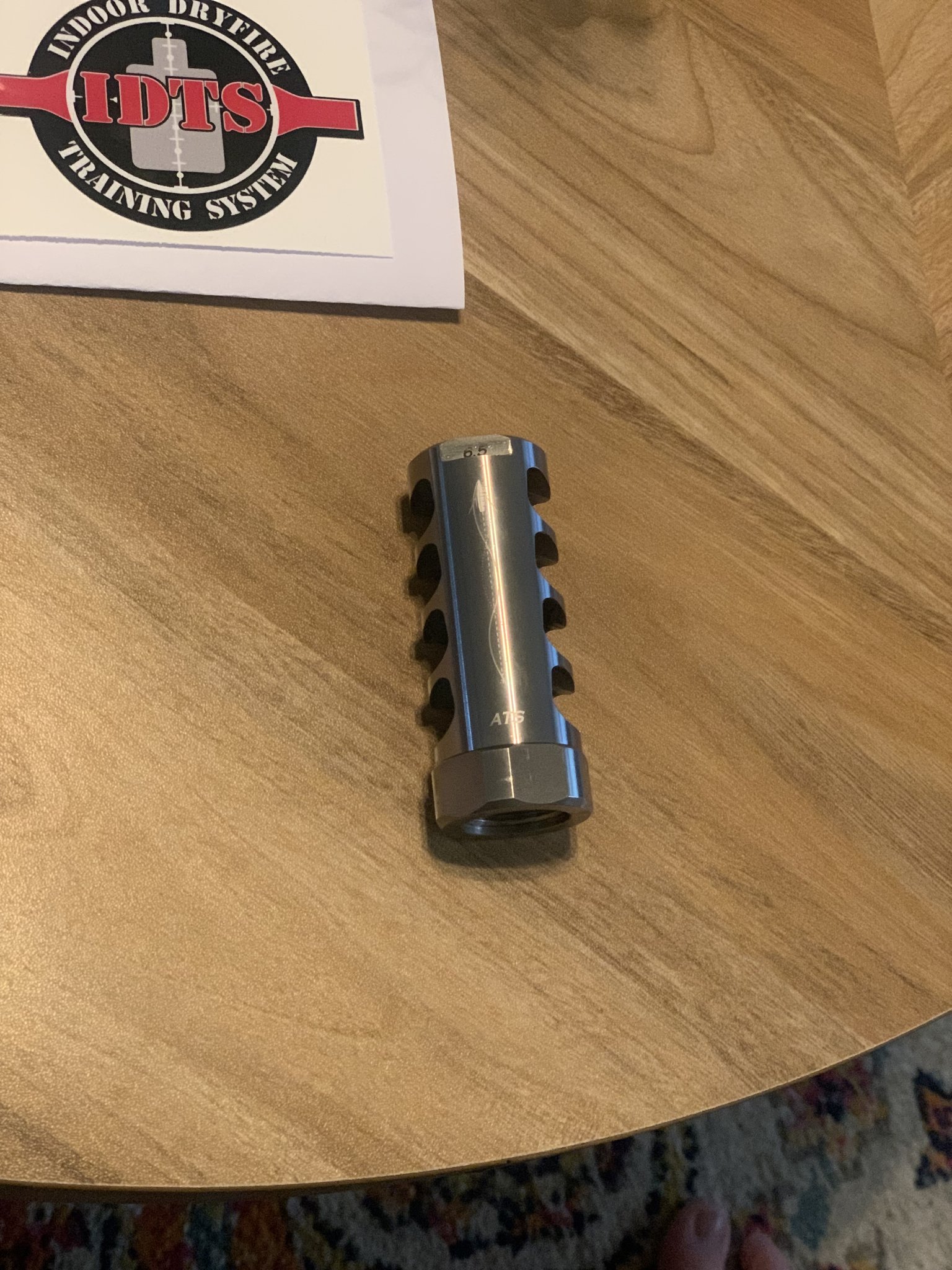 Stainless ATS 6.5MM muzzle brake. 3/4 threads.