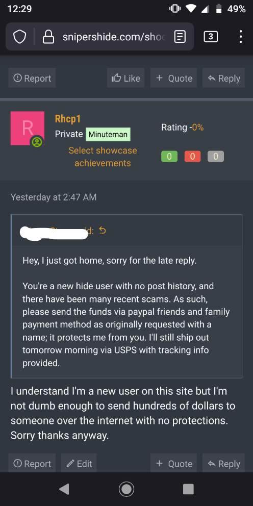 Before you take part in a purchase or sale, check the feedback section of the buyer or seller's profile to see feedback from previous experiences with that user. Member profile>Feedback Stats. If a user doesn't have much feedback, proceed at your own risk. If you do complete a purchase, do everyone else a favor and add your own feedback for that user which is also done from the user's profile.