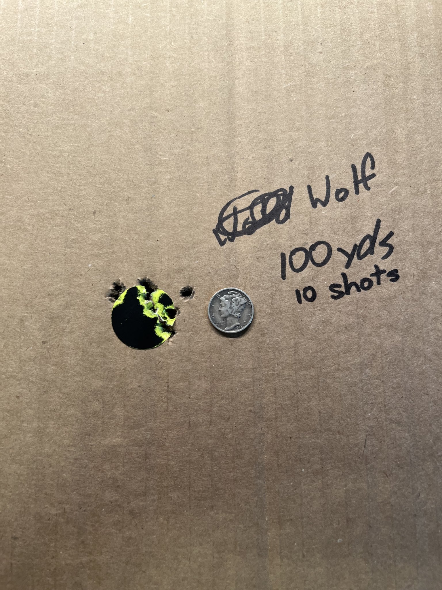 Finally got out to the farm to shoot at some longer distances than the local 25 yard range. Unmodified rifle, Strike Eagle scope and 419 Arca rail with an atlas bipod. Took some Sk rifle match and Wolf match target(eley). Shot at 50 and 100 on paper and 200 on steel. I was happy with the results although I think the wind got the Sk at 100.