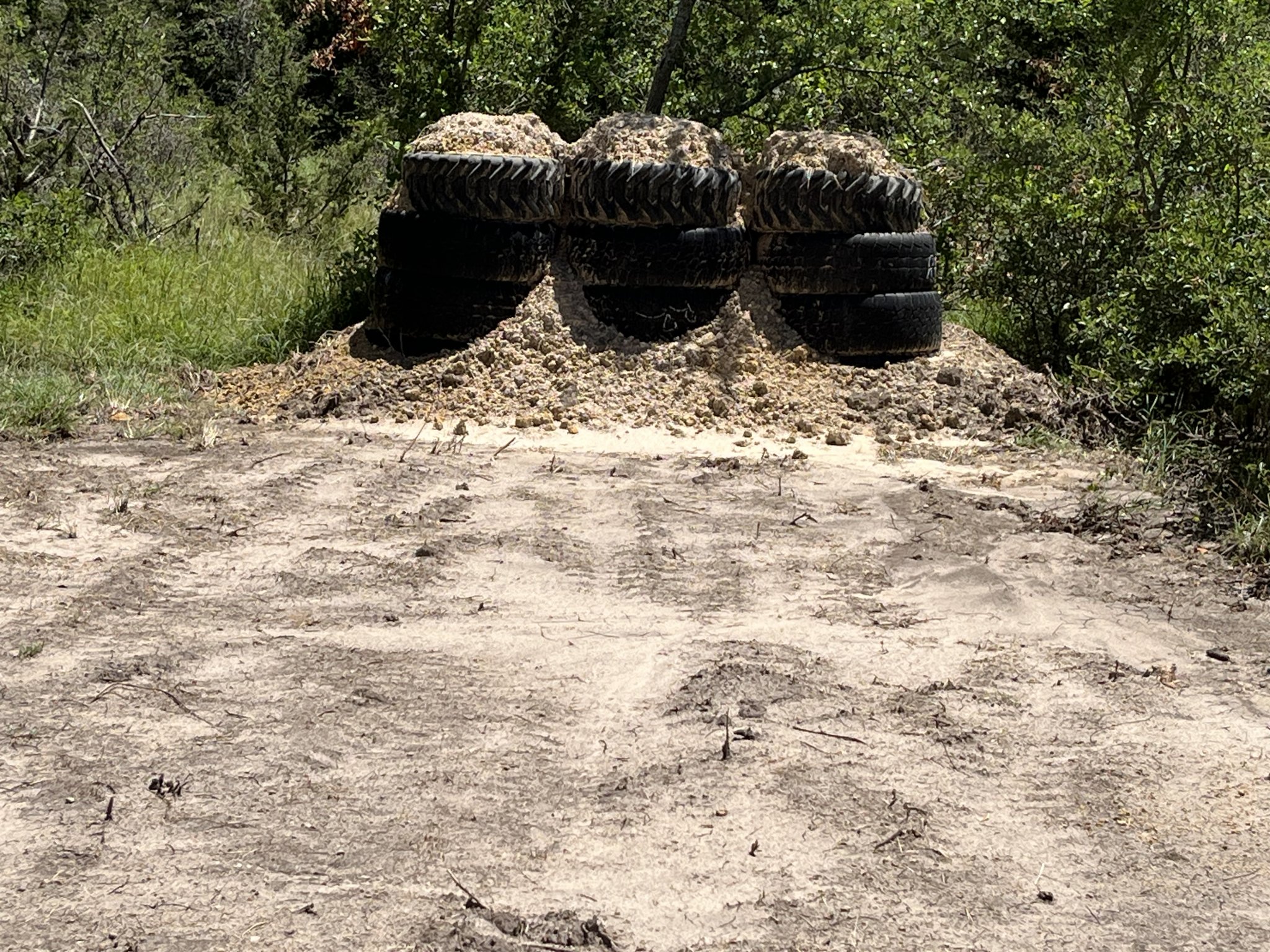 Have a similar on going project at our weekend place. Had my truck tires replaced and then picked up a few more from behind their shop. Spent a few weekends clearing trees/brush and stacked and packed the tires in front of a dirt berm. Although is only about 12' by 5', I will say that there's another 1100+ yards of trees and brush on my property behind it.