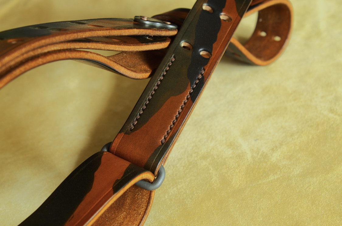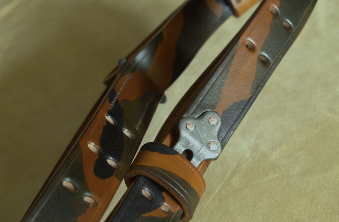M1907 national match sling in camo. Cut, dyed, and stitched by me. Hefty surplus frogs (claws). No sling swivels. $90 shipped.