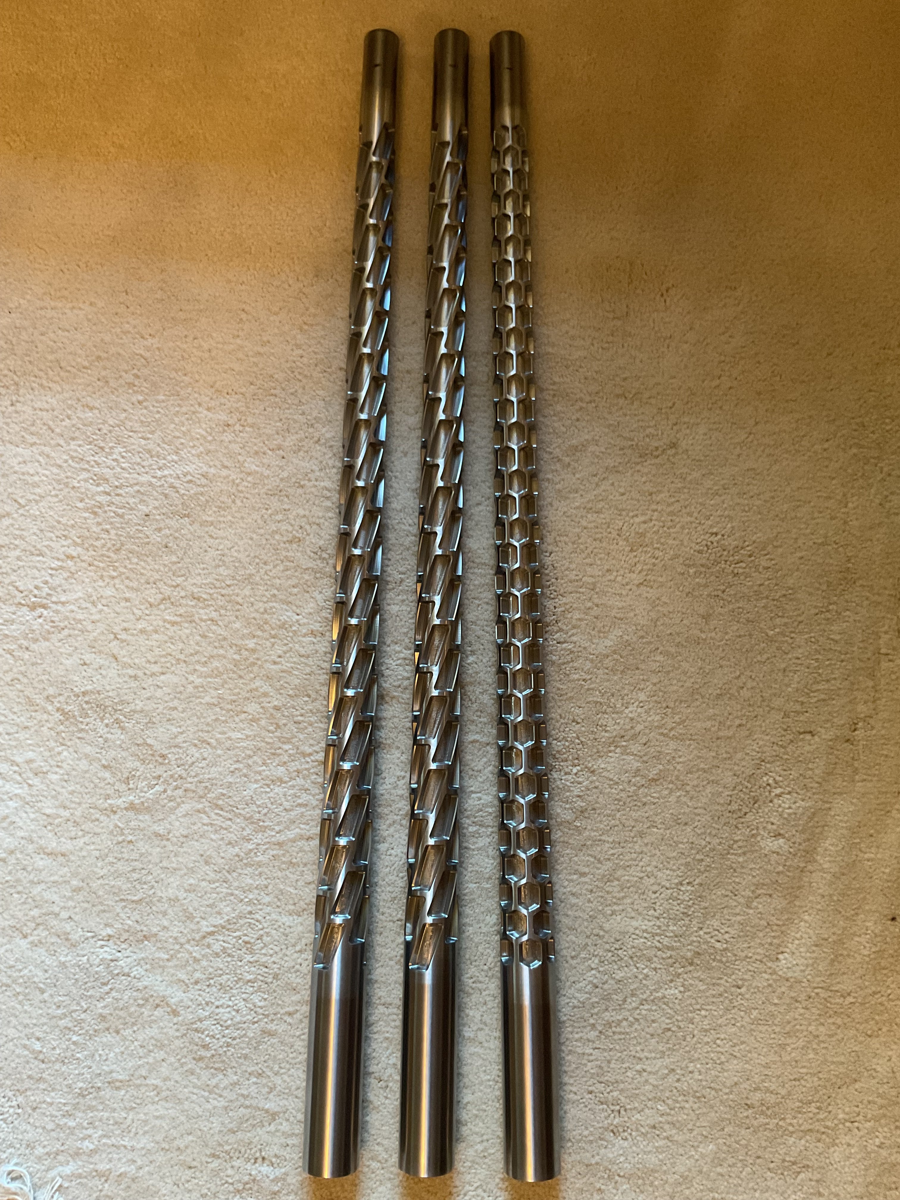 All 3 are 27” as they sit and MTU contours. 1:7.5” twist. The Murder Hornet is 4lbs. 15.5oz and both of the Pattern X are identical at 5lbs. 0.5ozs. Will sell 2 and keep the 3rd. I hadn’t ordered any of LRI’s fancy fluting before and it is darn impressive!