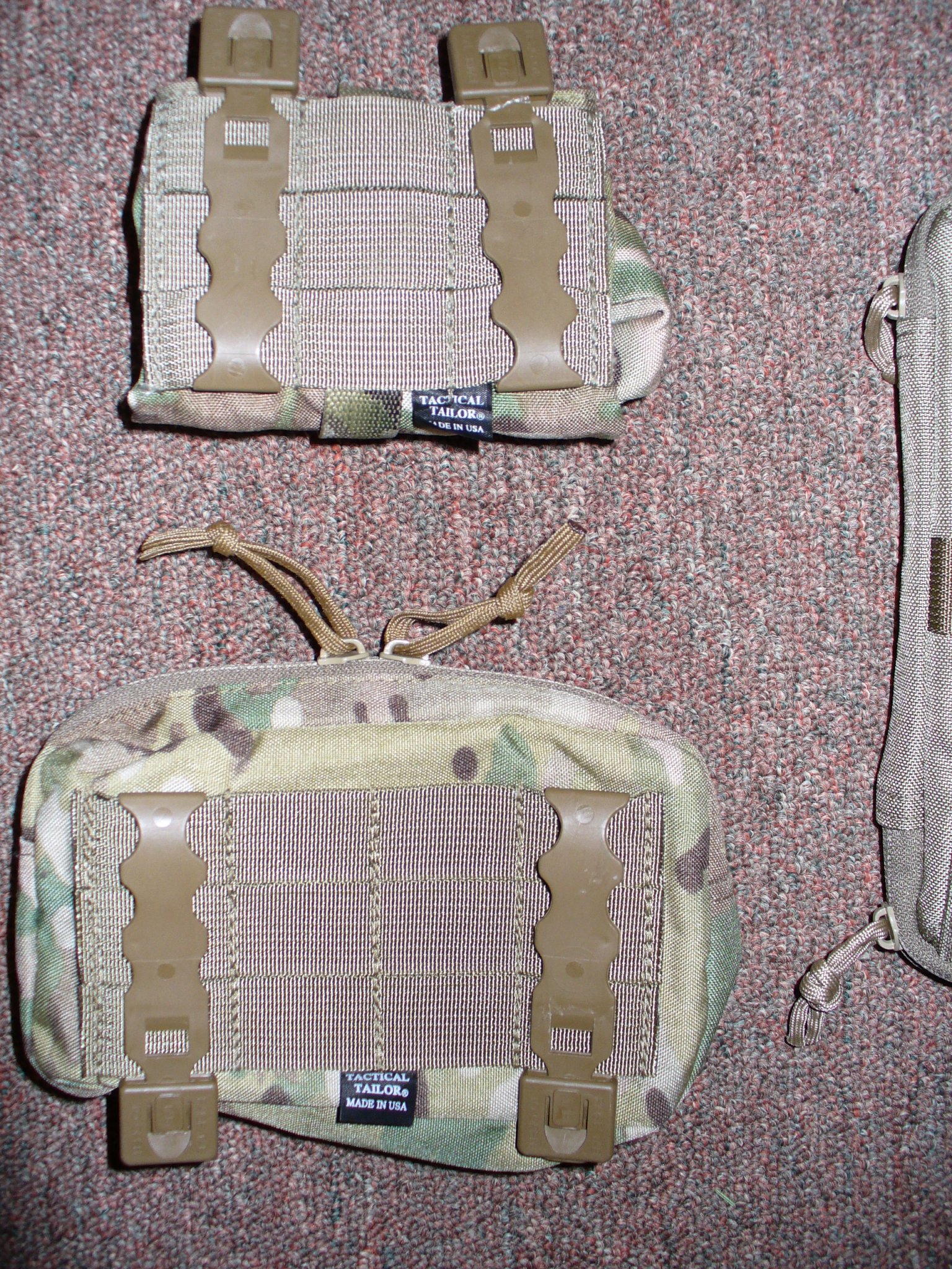 - Tactical Tailor RRSP small accessory/IFAK pouch. Multicam. Measures 4.5" tall x 7.5" wide x 2" deep with velcro loop area on front.