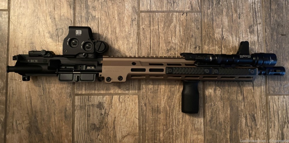 Excellent condition, unfired bcm complete upper. It started out with the bfh 14.5 with mcmr rail but was sent to adco for the rail to be swapped to the geissele urgi rail, bcm gas block pinned and bcm comp mod 1 pinned. It is unfired other than the test shots from the bcm factory. It does not come with eotech, surefire light, pressure pad, cloud defense lcs, iron sights or grips. Just the complete upper with bcm charging handle and bcg. 900 paypal shipped.