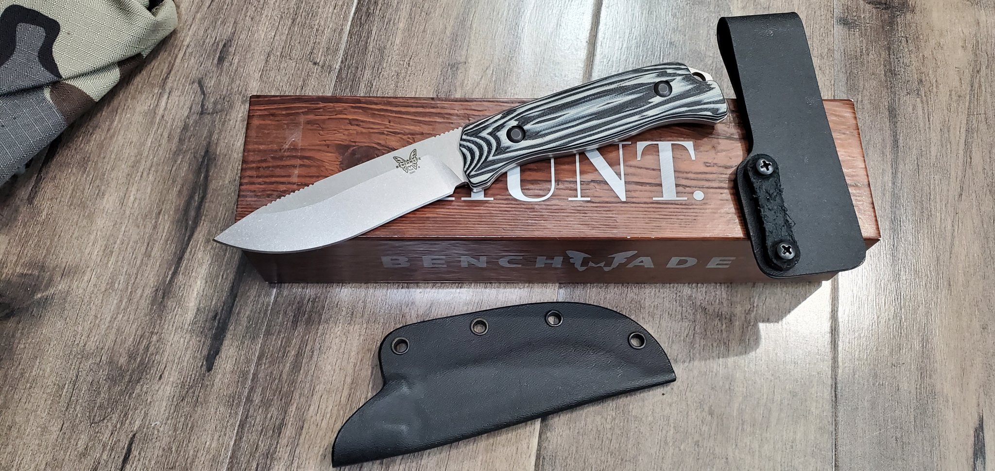 Benchmade Saddle Mountain Hunter knife for Sale. S30v. Used it to cube up one already boned out elk here at the house. Just have too many knives sitting around and trying to free up some funds up.. Sharpened with my wicked edge pro sharpening system. It is much sharper and has a better edge then when it came from Benchmade. No damage. Ready to roll.