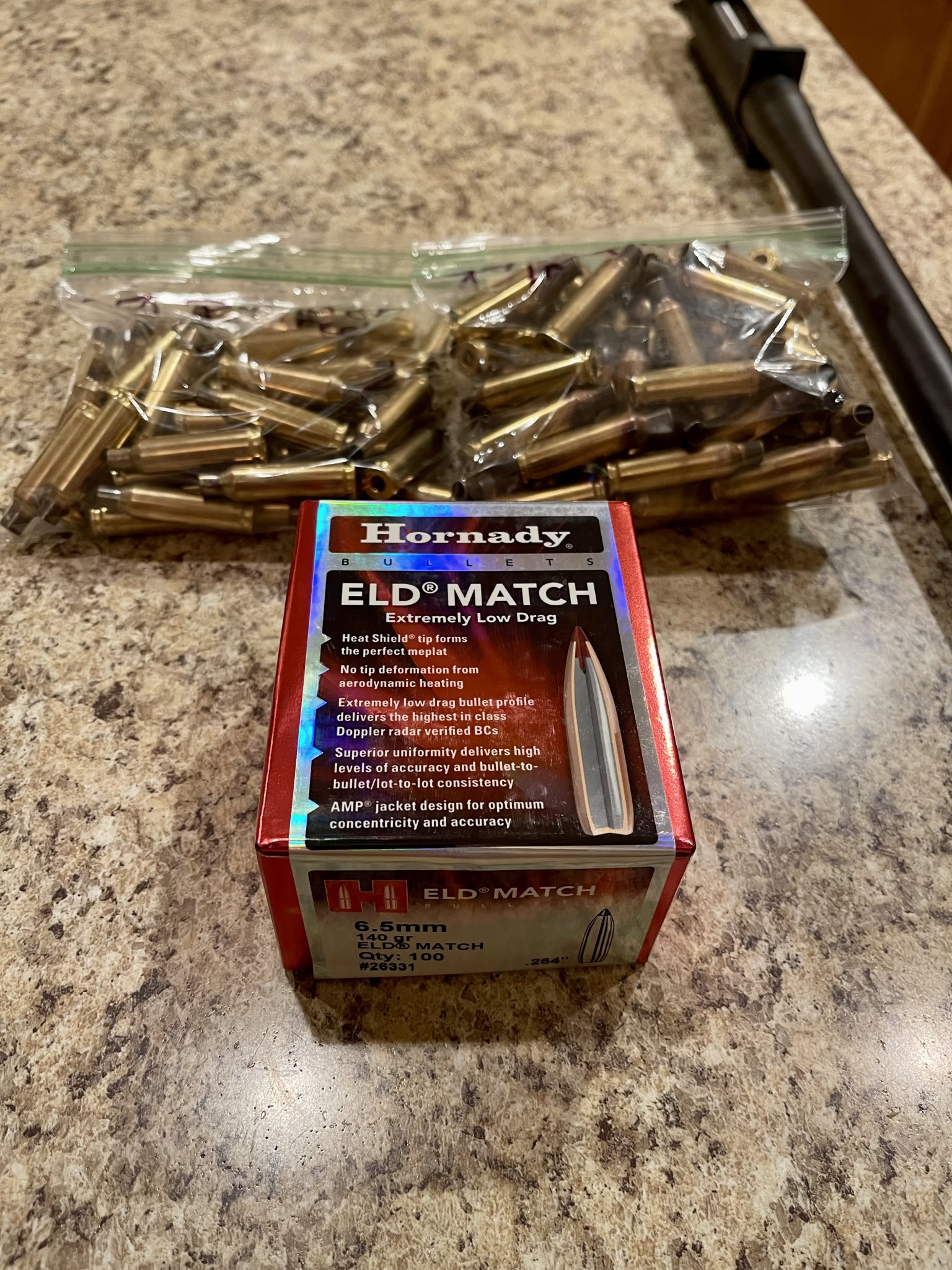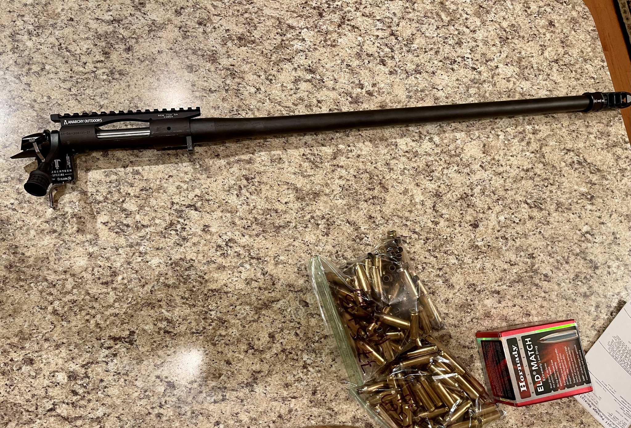 It’s a Bergara B-14 barreled action that started its life as a BMP model. It’s chambered in 6.5creed with a 24” heavy contour barrel. It has a VG6 PRS30 brake installed, a TT special flat trigger, Anarchy outdoors bolt knob as well as Anarchy 30MOA scope rail w/integrated bubble level. I’ve shot 177 rounds through it, 100 of which were handloads. I have 127 pieces of brass to include with the rifle, all of which was fired in this rifle. 77 pieces of S&B and 50 pieces of Peterson (all have been resized). Also including a box of 140gr ELD-Ms, which this gun shot incredibly well for a factory Bergara, .5 MOA average