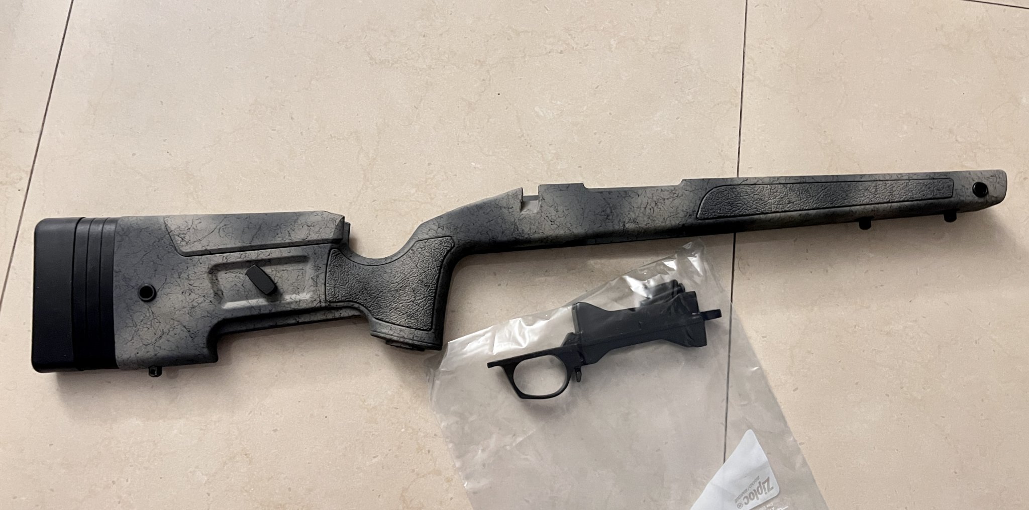 New to this and a bit of an amateur so apologies if this is a dumb question. Could I fit my hmr pro action and barrel into this? I'm not a fan of the black and gray speckled stock that came with the hmr pro.