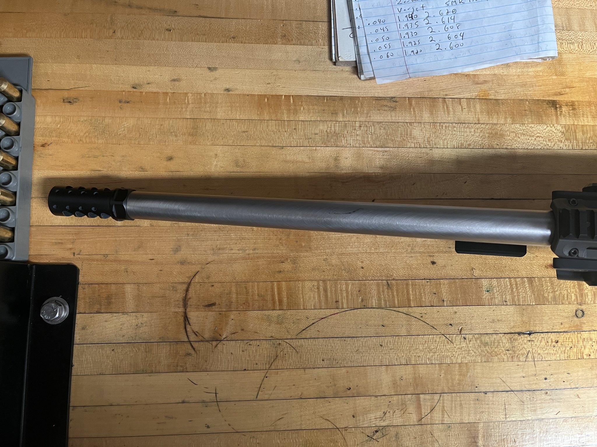 Just too much stuff. Shoots ELDM 108’s well. Have about 470 rounds through it. I have 67 hornady twice fired brass and 60 loaded 2x Hornady with ELDM 108’s id work out a deal for if interested.