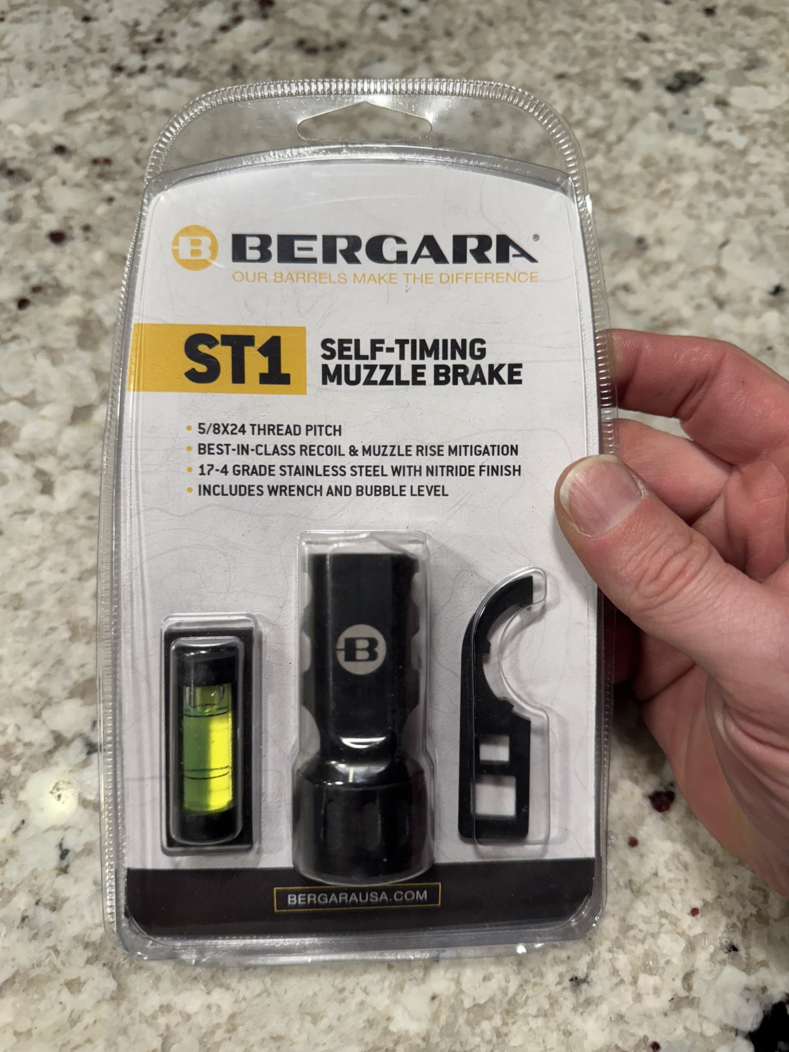 For sale is a used, but excellent condition Bergara ST1 .30cal Self-Timing Muzzle Brake. Comes with original packaging and includes wrench and level for installation. Retail price is $179.99.
