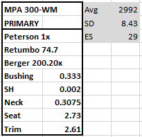 Thanks to all for the responses. Rusty, the only two I can't decipher is the sh and neck. My guess is that the neck is referring to the loaded o.d.? Not a real lot out there on 308 Win, so I'll probably call Berger Monday. Right now shooting out to a mile is but just a pipe dream for the wife and I. Getting consistent hits at 1000 yrd steel is the current goal.