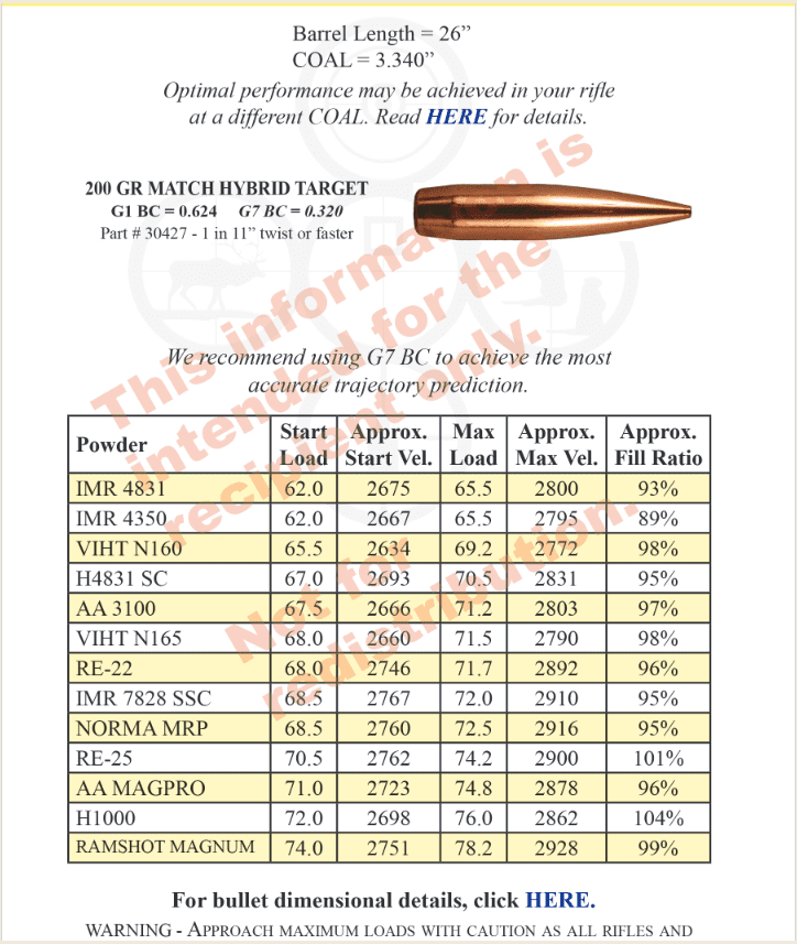 Berger 30 Caliber 200.20x Hybrid Target Rifle Bullet Reload Help