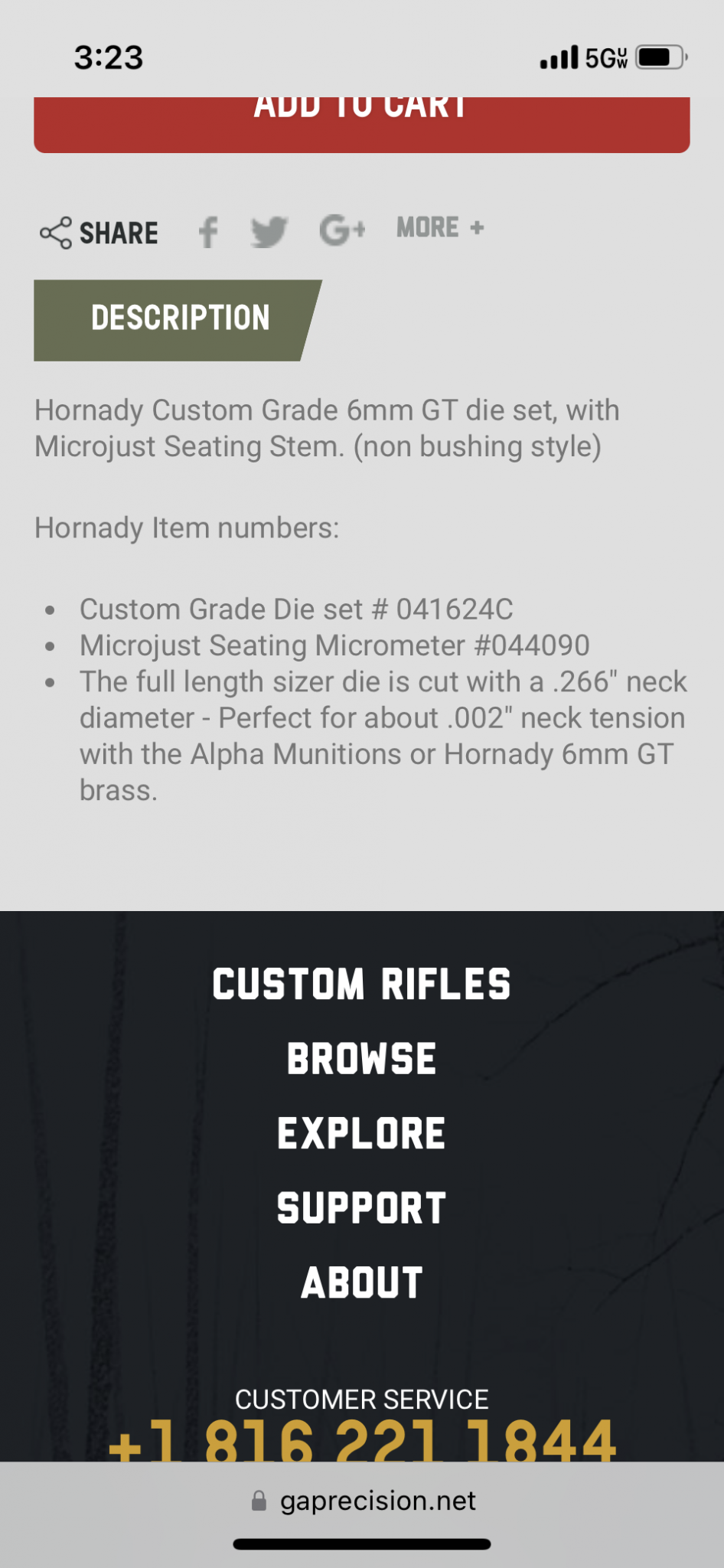 For 6GT I went with the custom Hornady die set that GAP offers because IME nothing beats a custom-honed FL die (GAP's comes custom-honed to .266"). Usually, you have to buy an FL die and then send it back in and wait to get it custom-honed (GAP has already done it). I've only made 300rds with it so far, but the ammo has come out great.