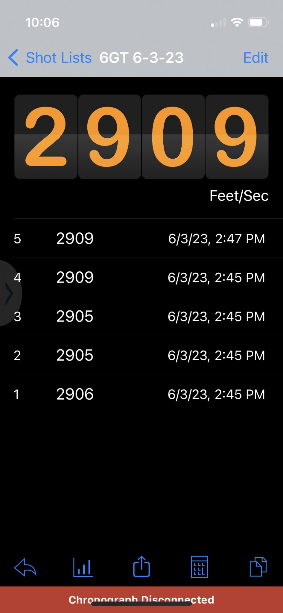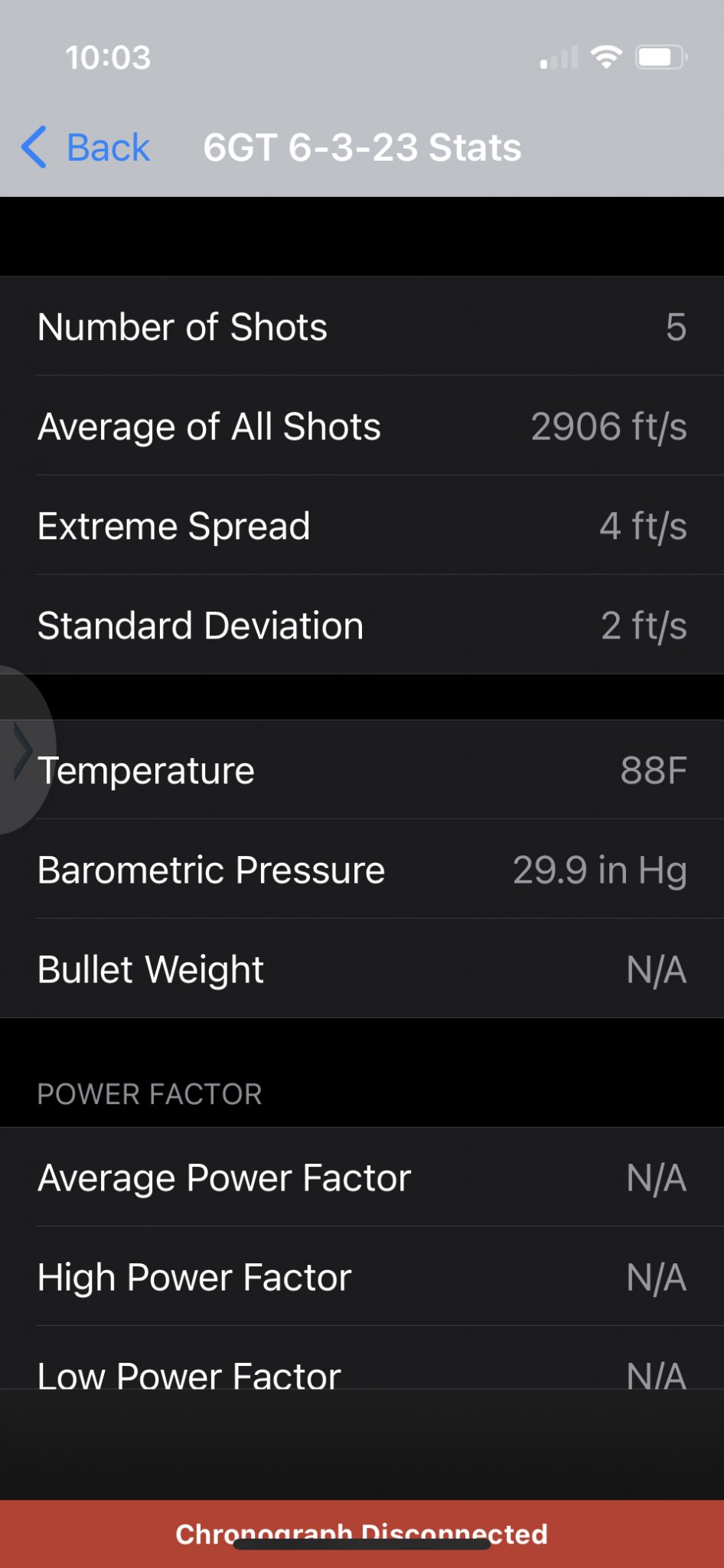 I put the barrel back on and shot 5 rounds over the chronograph the other day to check MV since I hadn't chrono'd/shot the barrel since it was 47degF instead of 88degF...