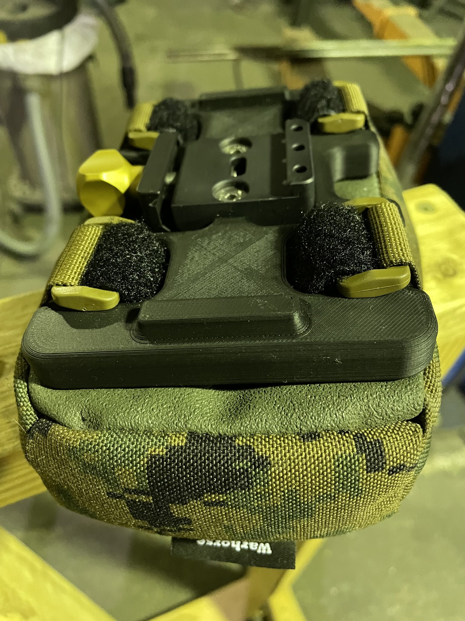I know this is old, but want to print one like it. How did you screw the clamp into the plate? Just directly threaded into it, or added other threaded nuts? And if nuts, how were they mounted into the 3d printed plate? During printing or afterward?I 3D printed a plate to fit an Area 419 clamp and use a little Warhorse Developments bag on it. It was supposed to be just to try it out before machining a proper one up but it worked so well I didn't bother changing it. I use a waxed canvas Shmedium most of the time but this definitely has its place depending on what you're shooting off.