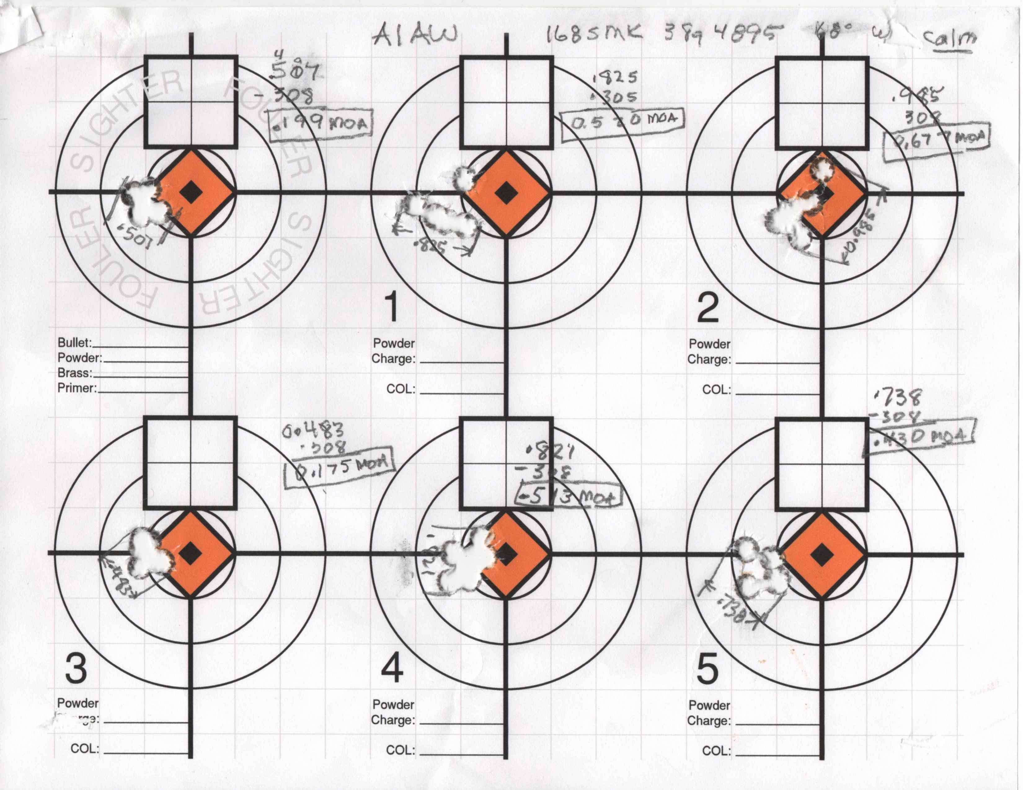This is not indicative of my overall skill or the rifle on an average day. Although, I've never shot this load again for groups. Was looking for a hunting load and found it. Shot a couple more one time just to check zero and they disappeared into one hole. So maybe i need to spend more time with this load..... That hole above the paster is a .223 bullet.