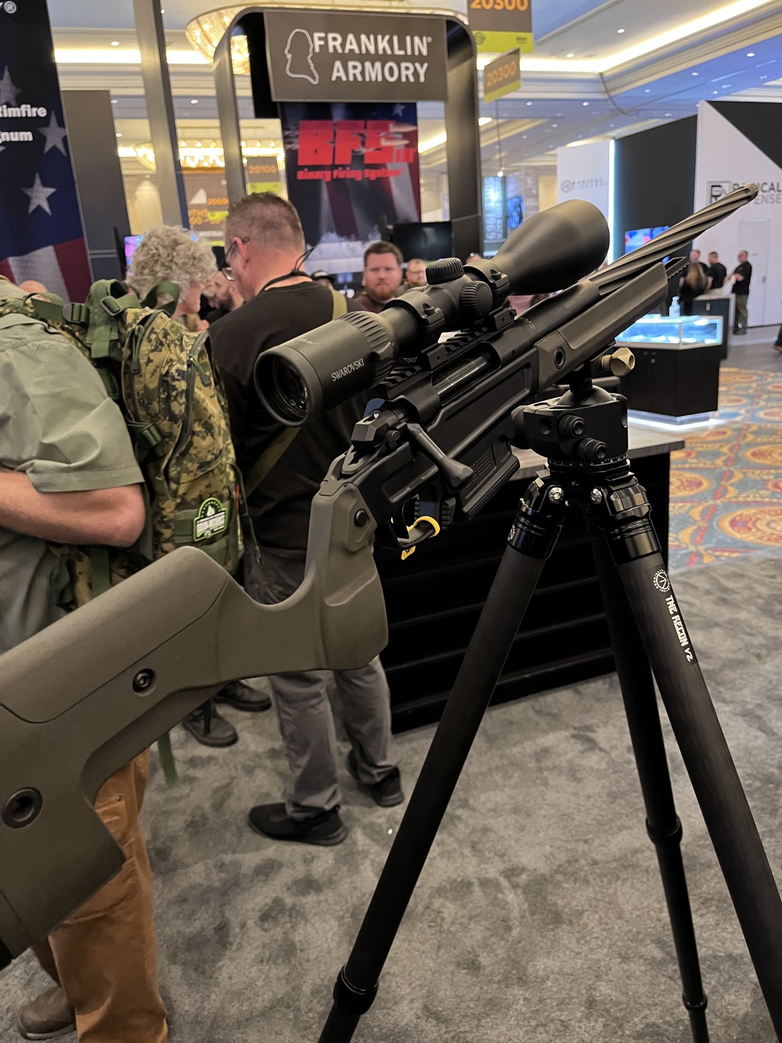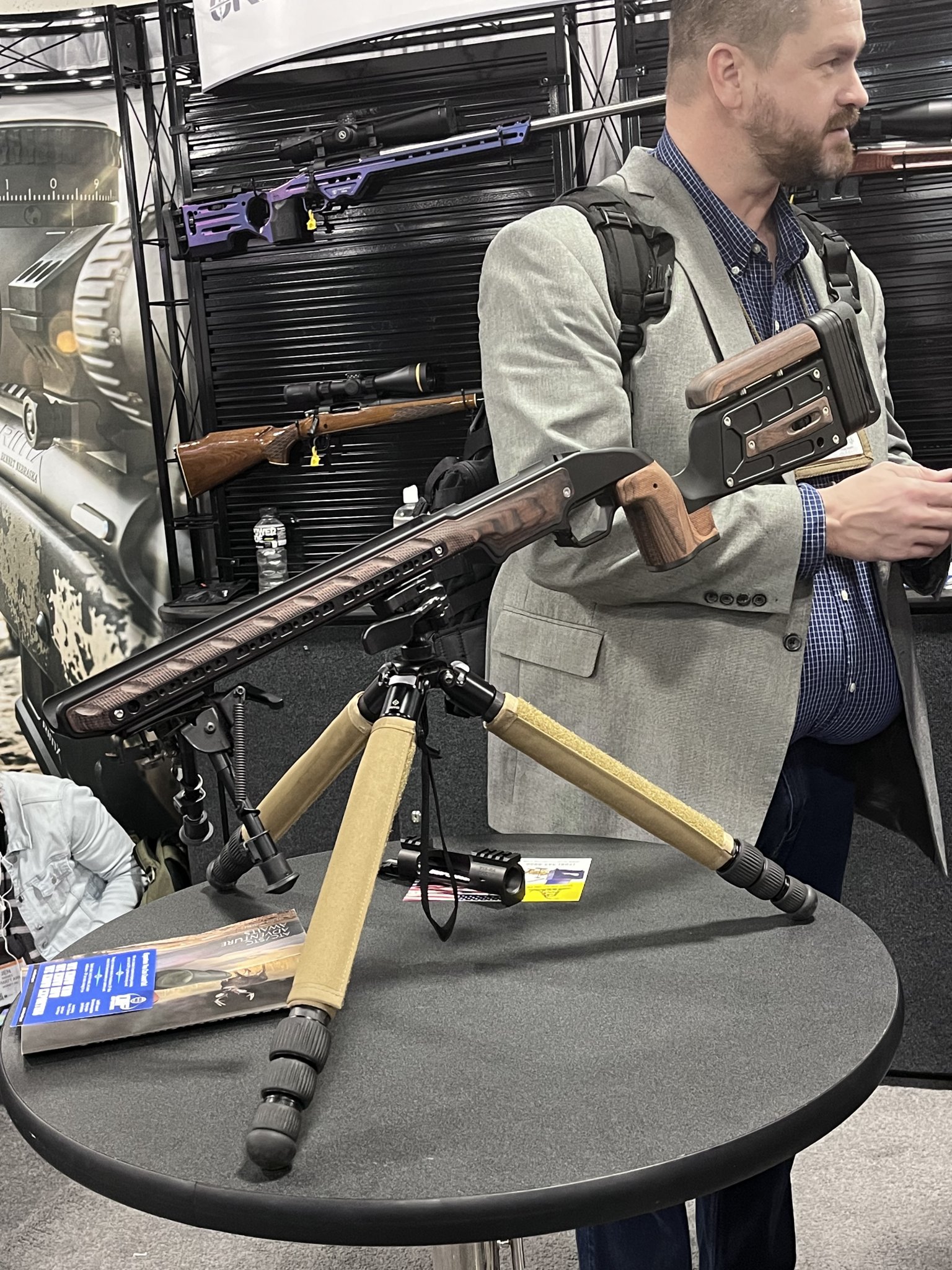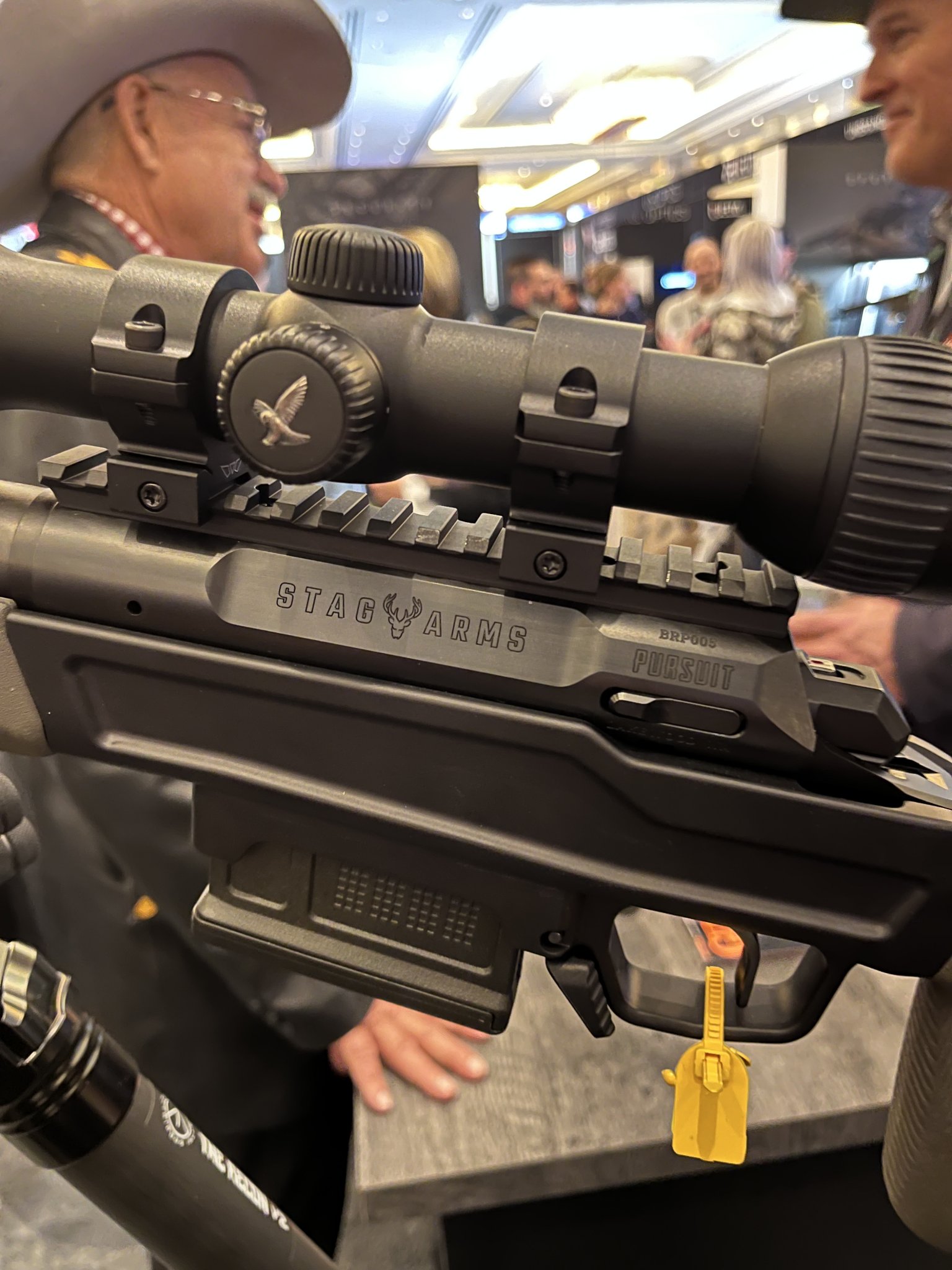 New Stag bolt gun. 60° prototype aiming for Tactical hunter crowd. They told me these prototypes are aluminum actions but they are working with magnesium also. Price point to be between $1500-$2000 MSRP. Shooting for summer launch with complete rifles first then components later. I liked this action better than the new Aero offering. Chassis felt very good and very similar to a Bravo.