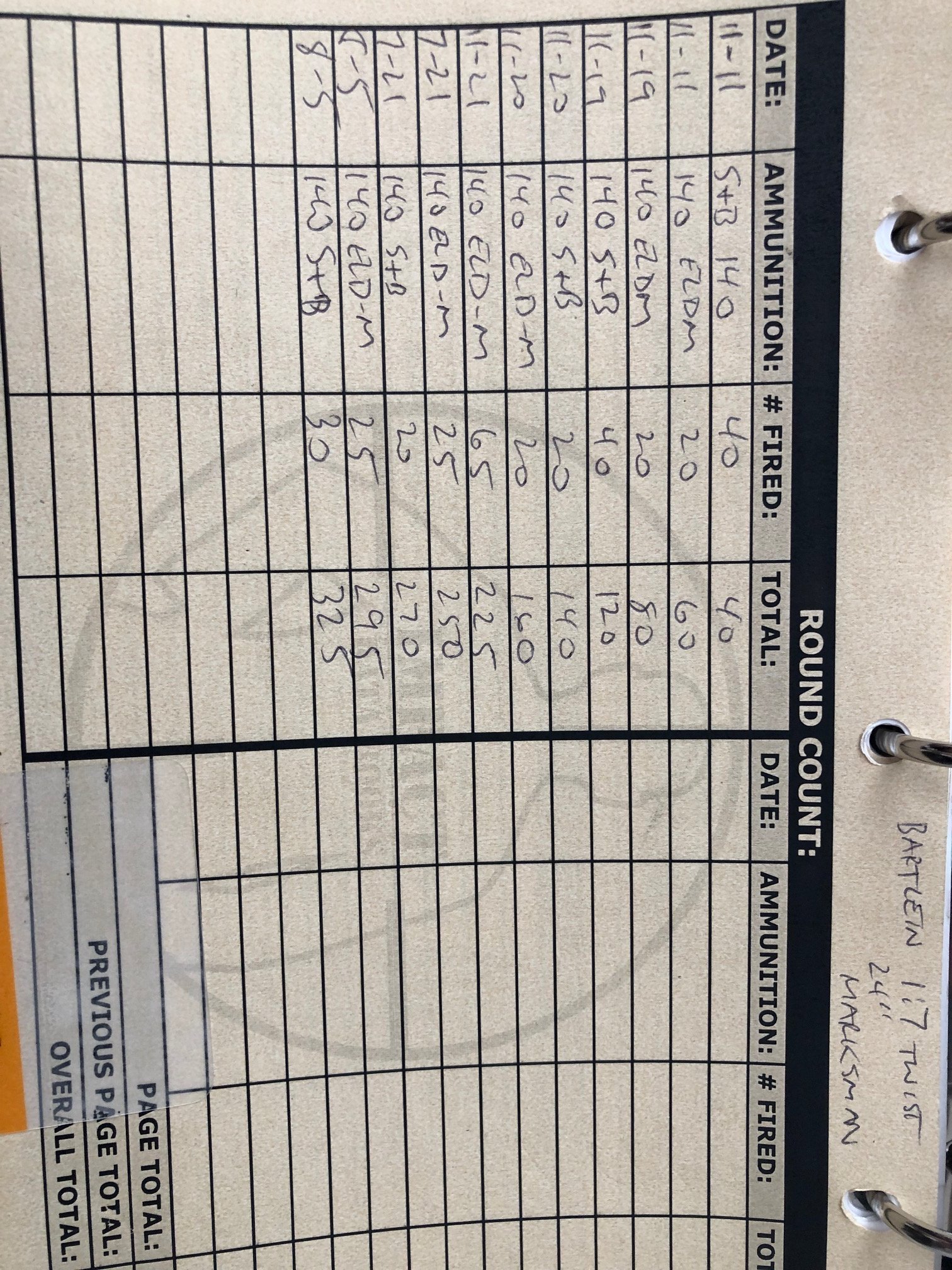 Exactly 325 rounds on action and barrel. Consistently shoots sub 1/2 moa by this amateur shooter. It will come with a Silencerco ASR brake.
