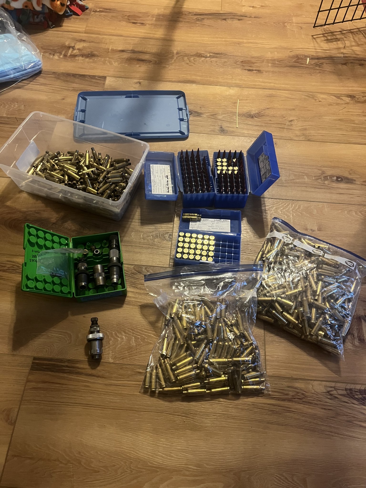 Included in the package will be 293 pieces of lapua brass that I have notes saying maybe donuts in the necks (37 rounds still loaded) 96 2x fired, 207 1x fired and 78 new brass (48 loaded, 30 primed.)