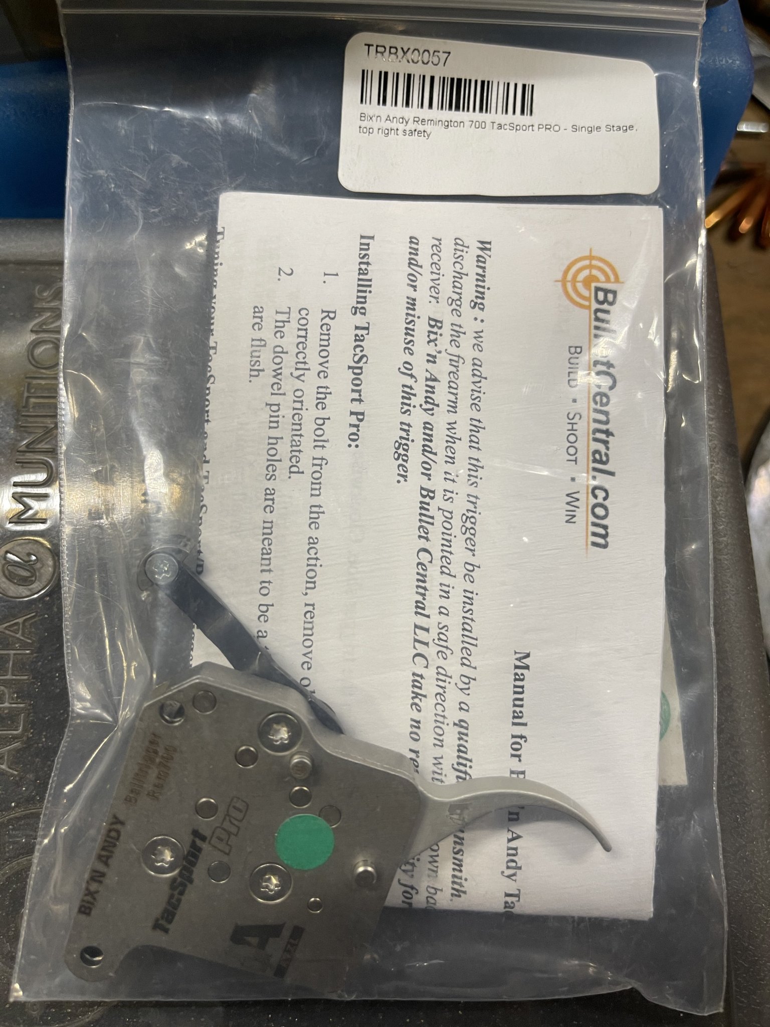 Bix N’ Andy tac sport pro single stage for model 700 trigger replacement. Left or right safety. Single stage. $250 shipped. PP discreet preferred.