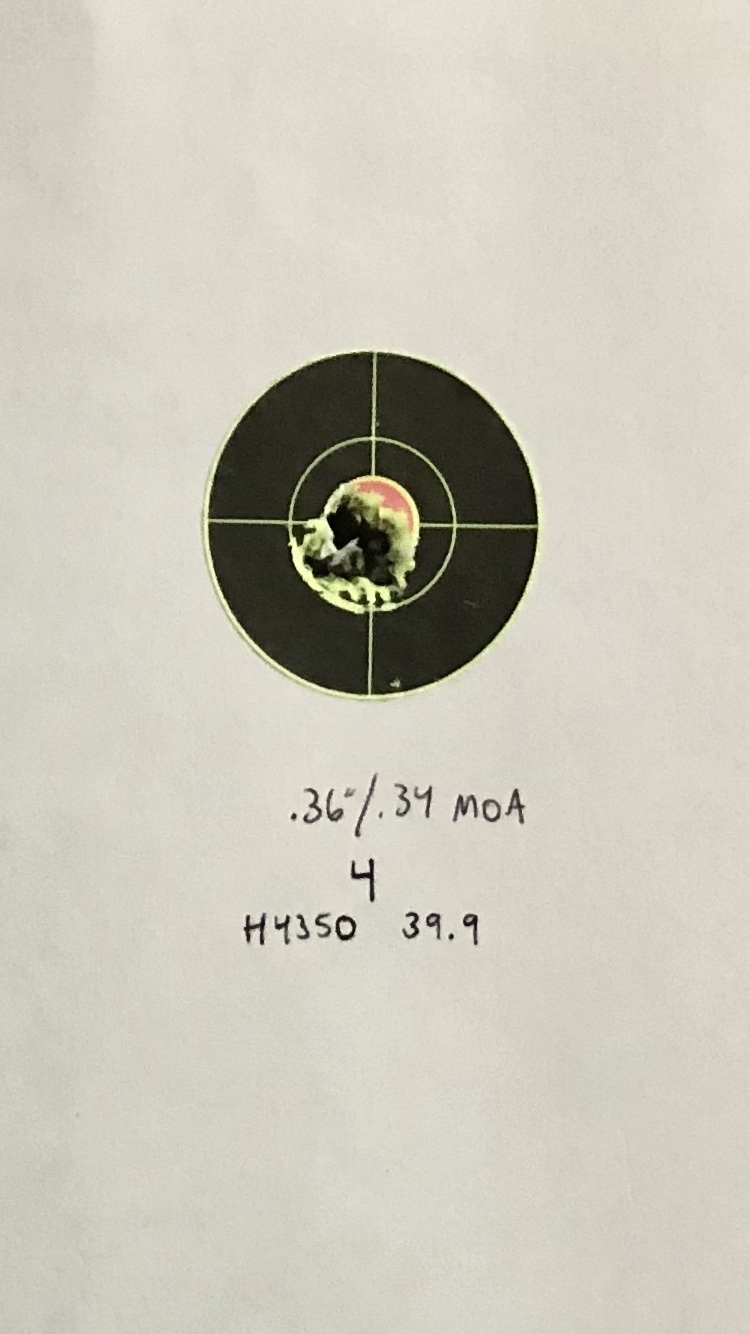 - 505 rounds on barrel with very mild handloads (39.9, 40.0gr H4350)